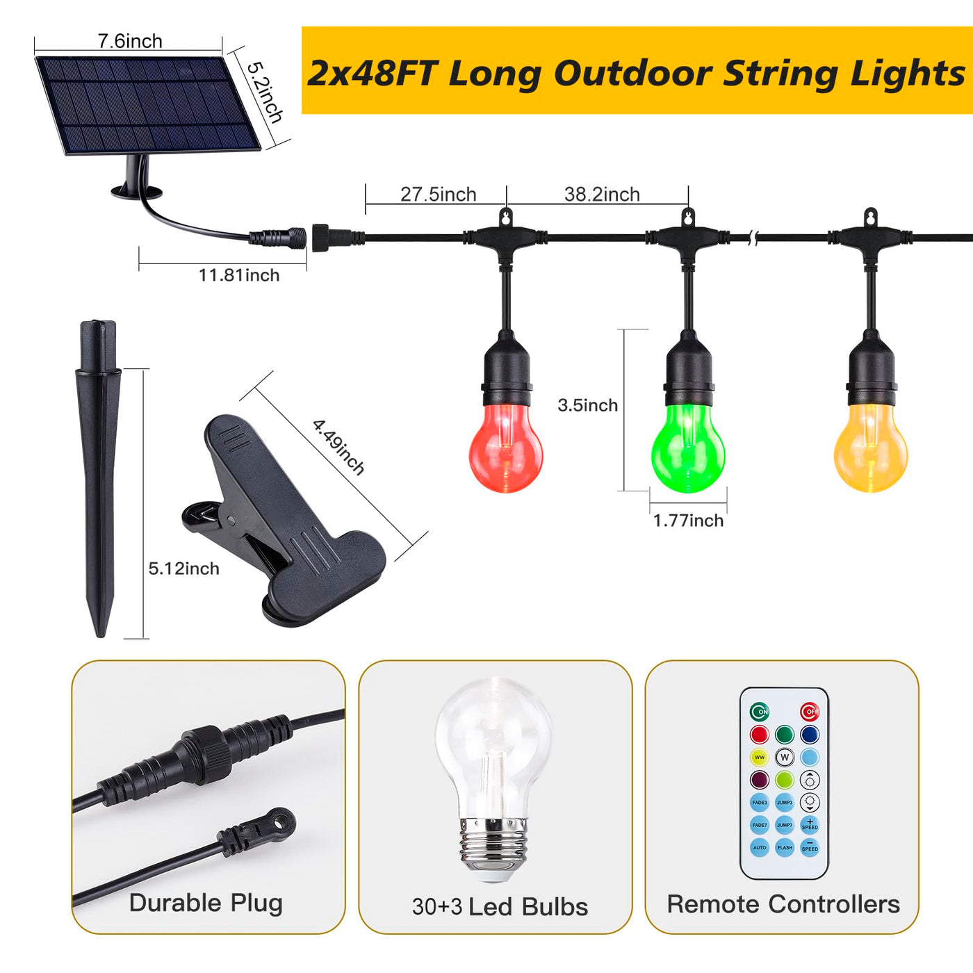 Ipstank Solar Outdoor Rgb String Lights, 96Ft Dimmable Patio String Lights With Shatterproof Edison Bulbs, Remote, Commercial Ou