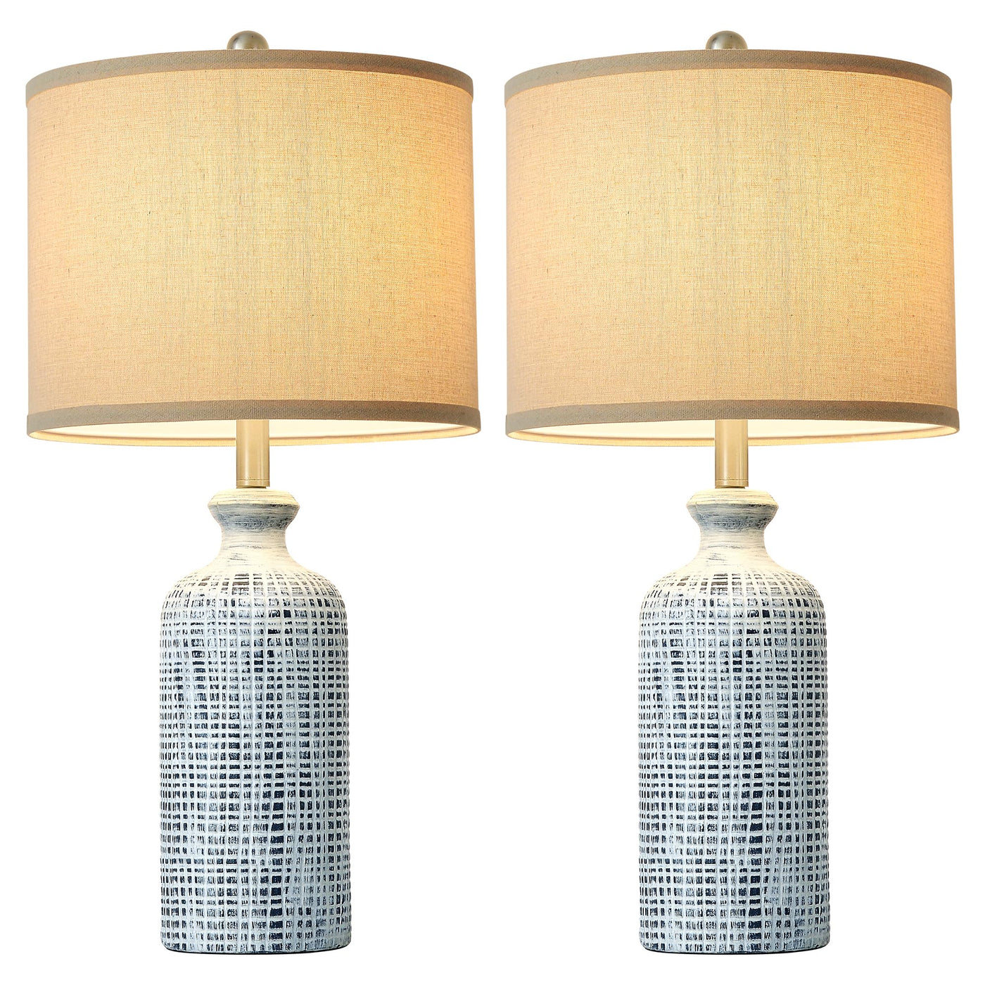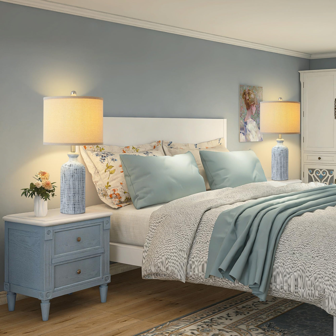 Ireliare Living Room Lamps Set Of 2, 25.8'' Ceramic Table Lamps For Bedrooms With Linen Shade, Modern Farmhouse Lamps For Nights
