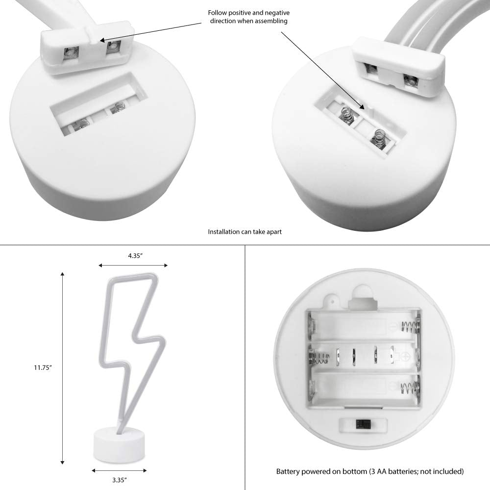 Q: How do I power the neon lightning bolt lamp?A: The lamp operates on 3 AA batteries, which are not included. This makes it convenient and free from messy cords or electric wires.