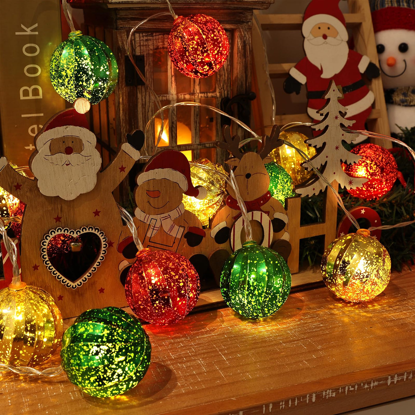 Christmas Decorations Lights, 20 Led 13.5ft Battery Christmas Lights with Timer & 8 Modes, Christmas Ball Ornaments Lights for Xmas Tree Wreath Window Wall Home Garden Outdoor Indoor Decor