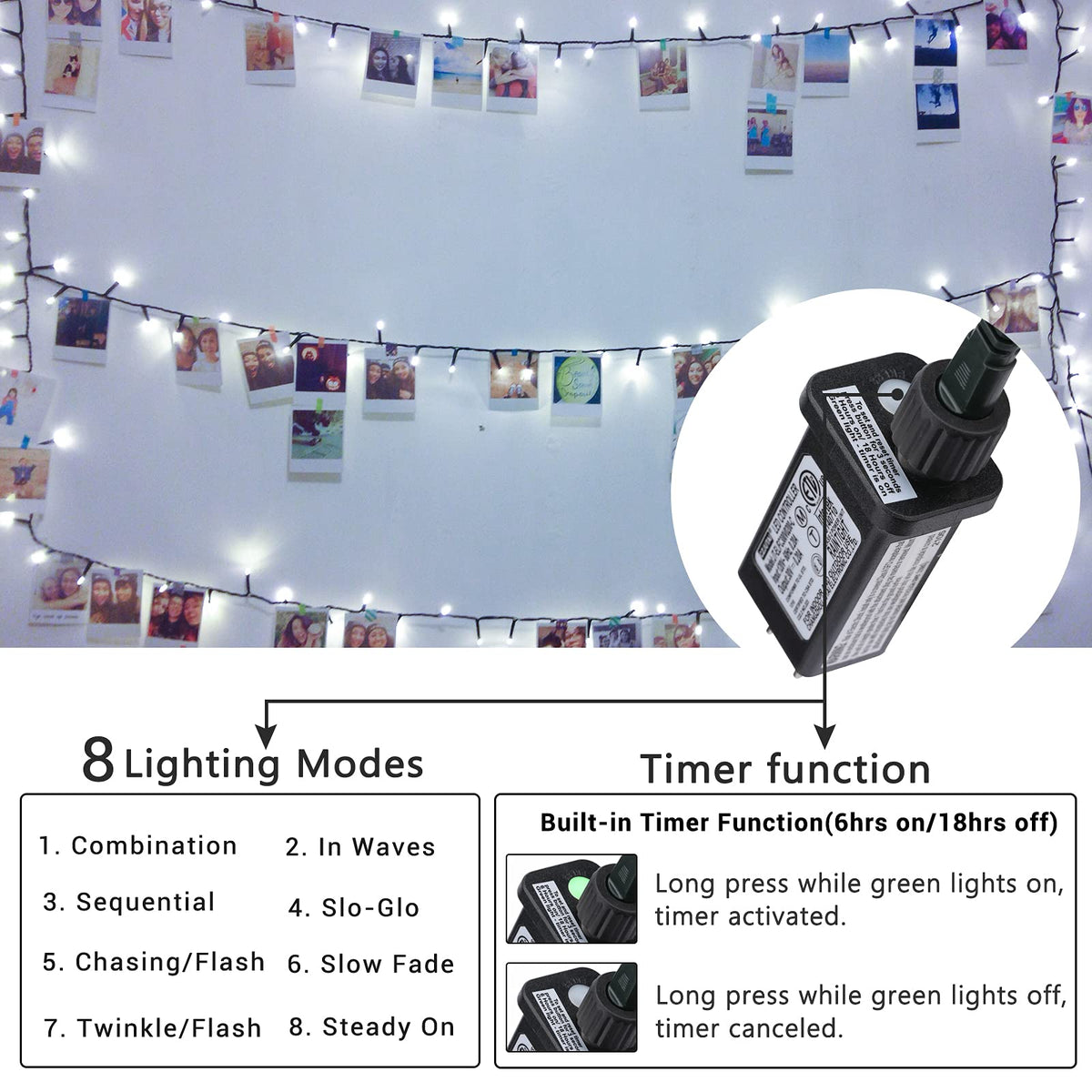 Timer & Memory Functions: Set the lights to automatically turn on for 6 hours and off for 18 hours, with a built-in memory chip to retain your last selected mode.
