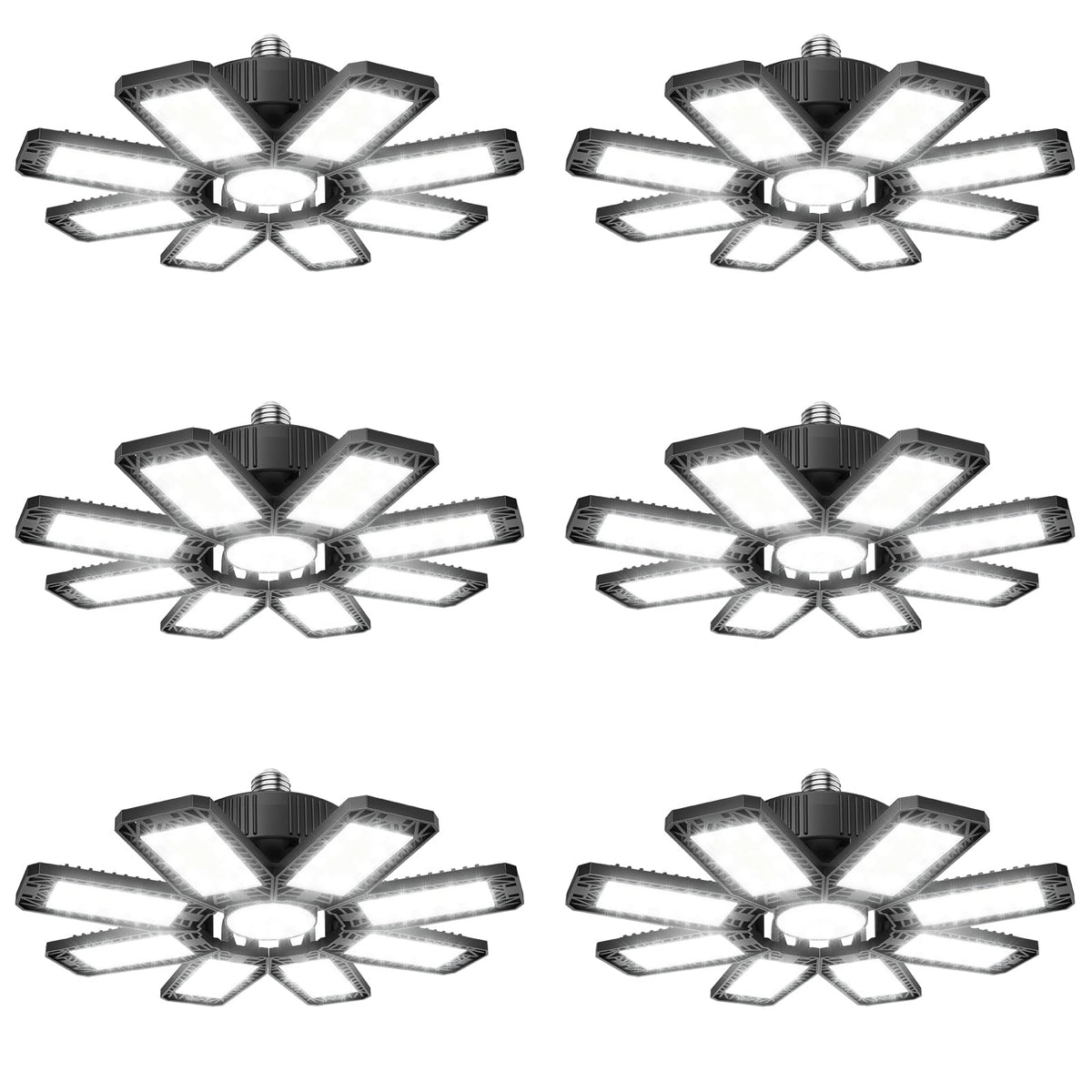 Iskydraw Led Garage Lights 6 Pack 24000Lm Bright Shop Lights 240W, Deformable Garage Lights Ceiling Led With 8 +1 Adjustable Panels, Screw In Garage Workshop Basement Barn Warehouse Light Fixture
