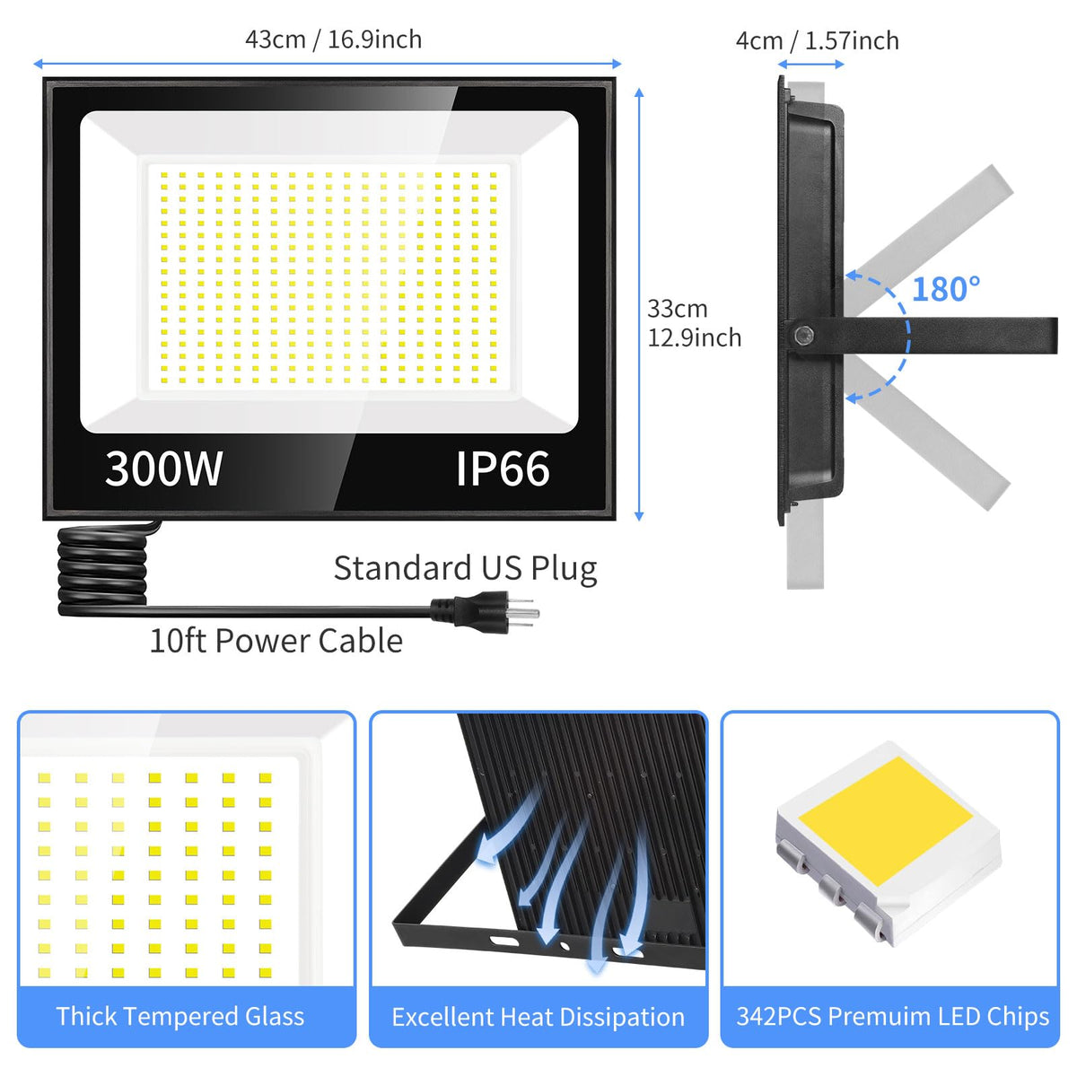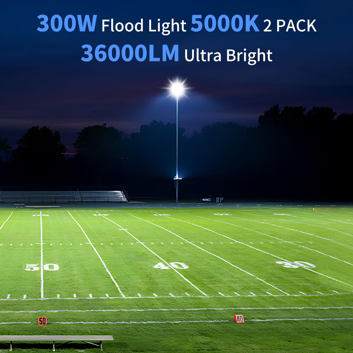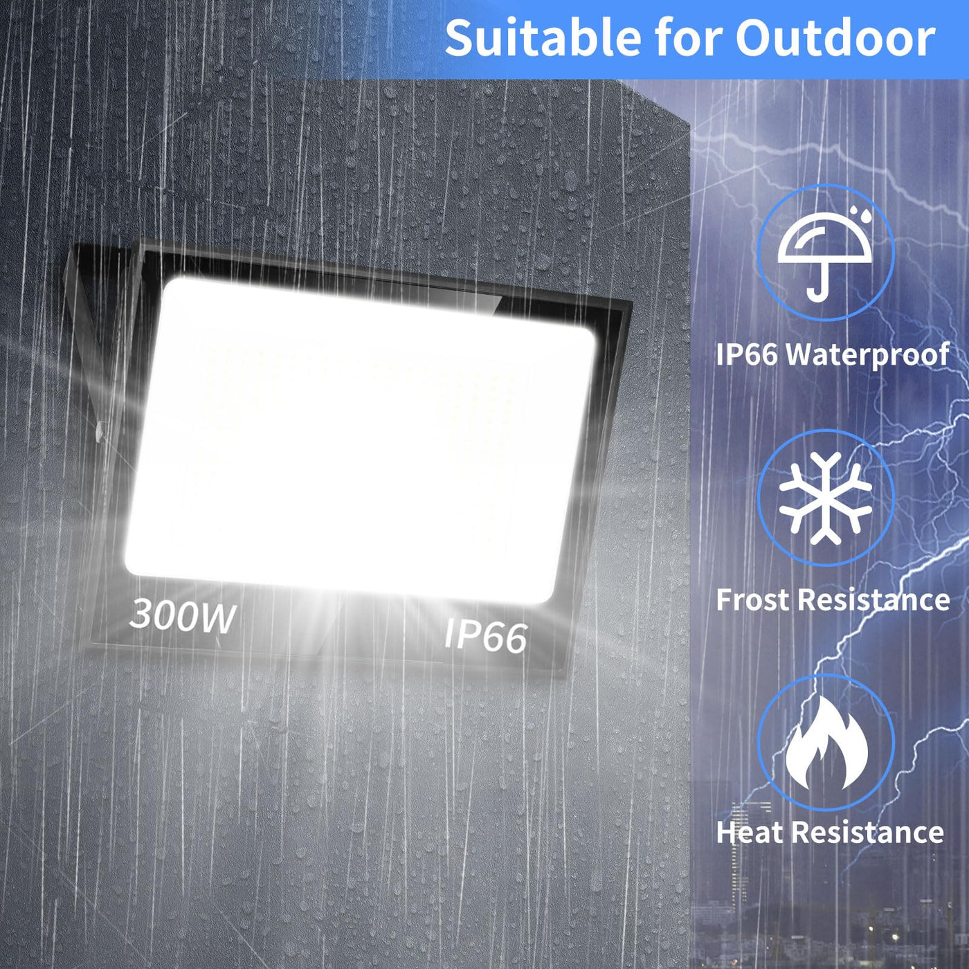 - **Ultra Bright and Energy Efficient**: Powered by 342 high-quality LED chips, this floodlight produces an impressive 36,000 lumens of 5000K daylight white light, effectively replacing traditional 2000W halogen bulbs and saving over 90% on electricity costs.
