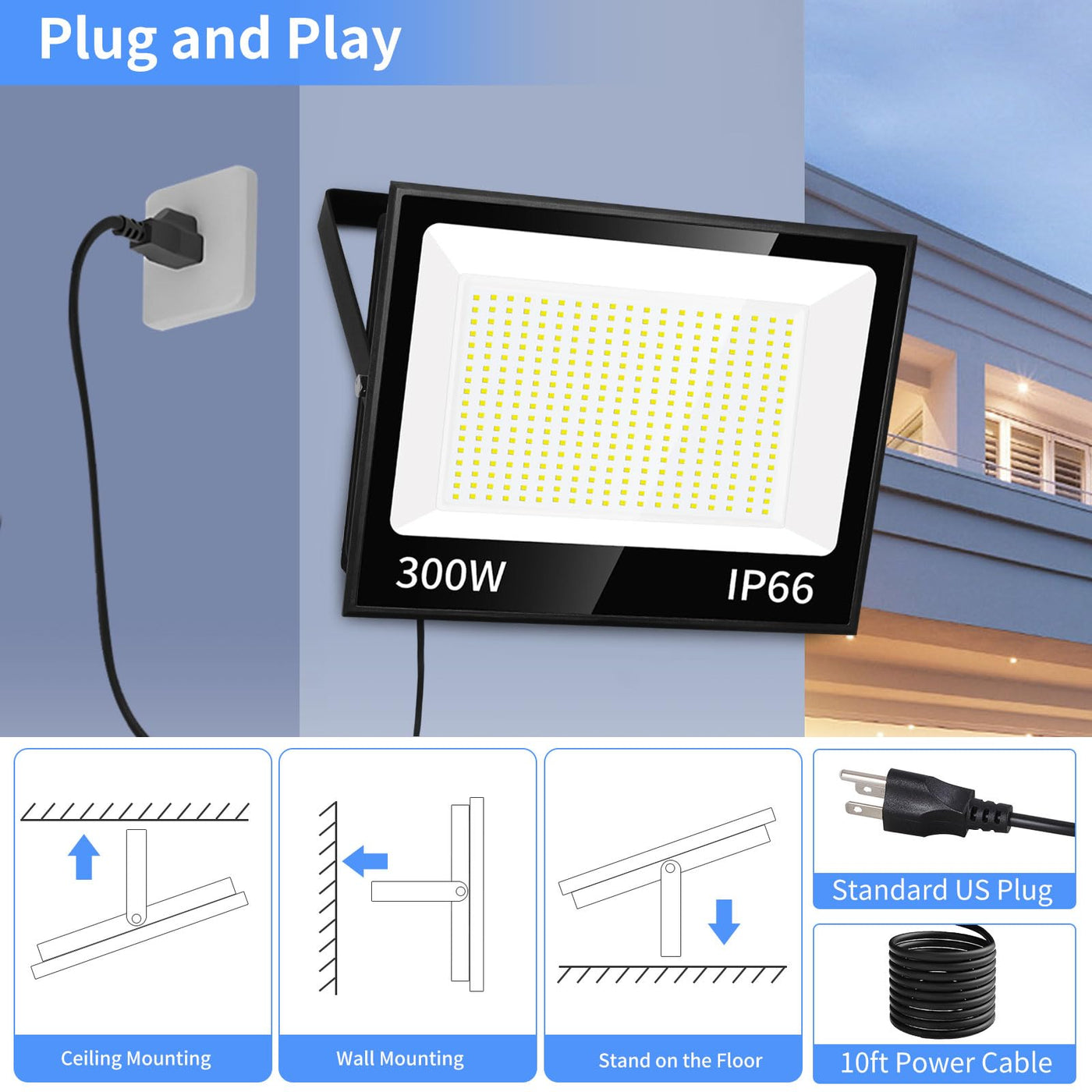 - **Versatile Installation with Long Power Cord**: Equipped with a standard US plug and a generous 10ft power cord, this plug-and-play floodlight can be easily set up anywhere you need lighting, without complicated wiring.