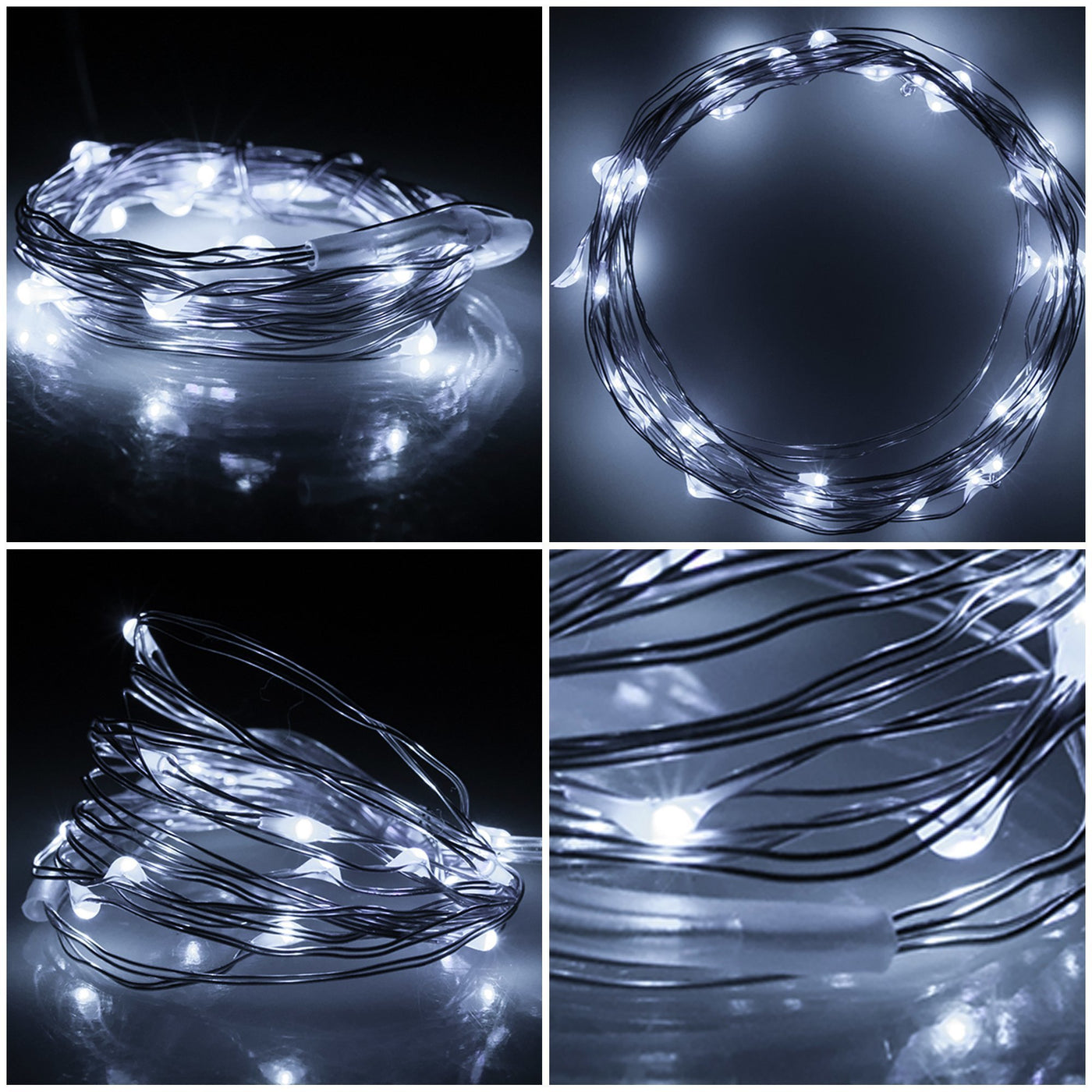Itart Micro Led String Lights Battery Powered Set Of 8 Cool White Mini Fairy Light 20 Led 6Ft Ultra Thin Silver Wire Rope Lights For Craft Diy Costume Centerpieces Display
