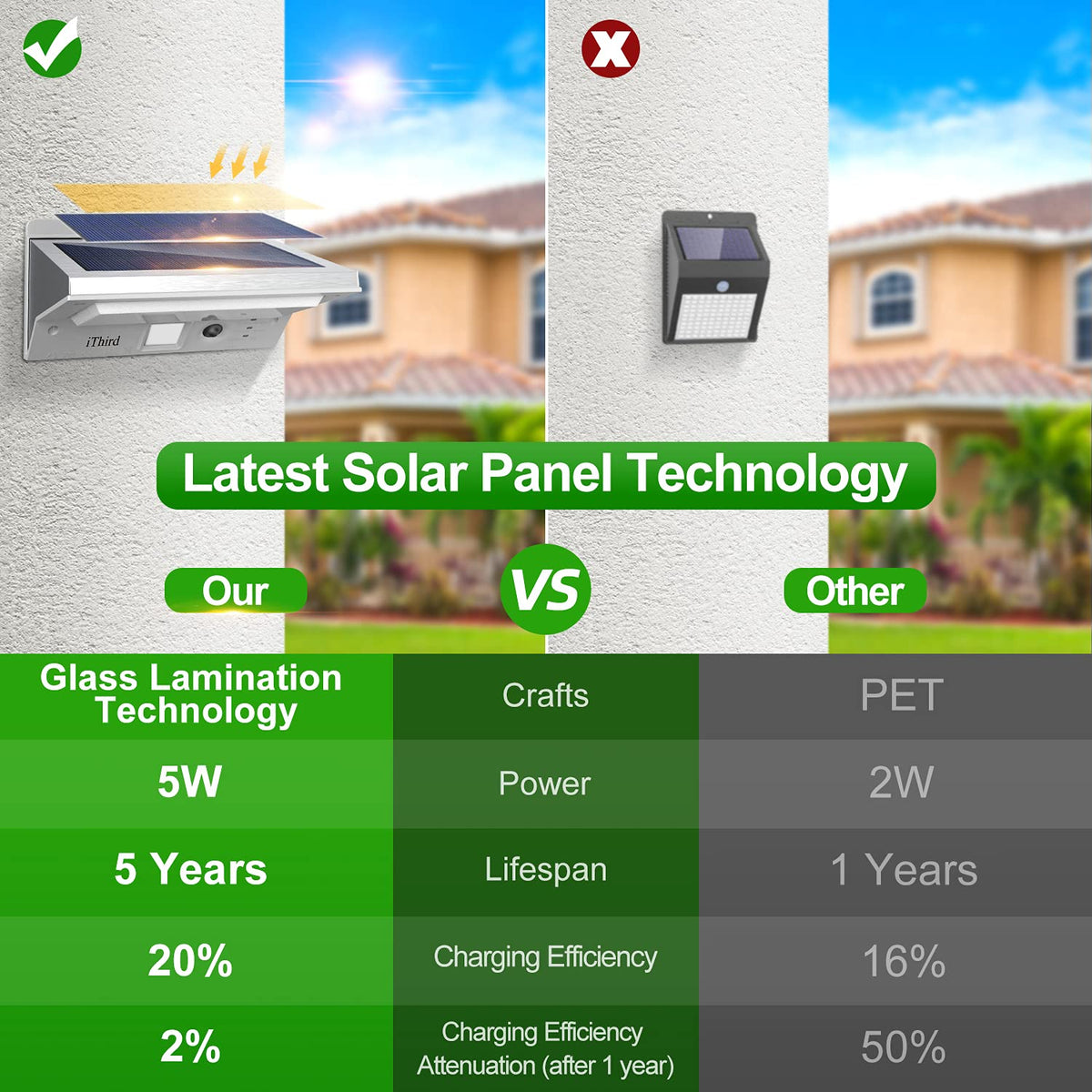 - **Long Lifespan:** Unlike many solar lights with PET panels, our design boasts a lifespan up to five times longer, making it a smarter choice for your outdoor lighting needs.