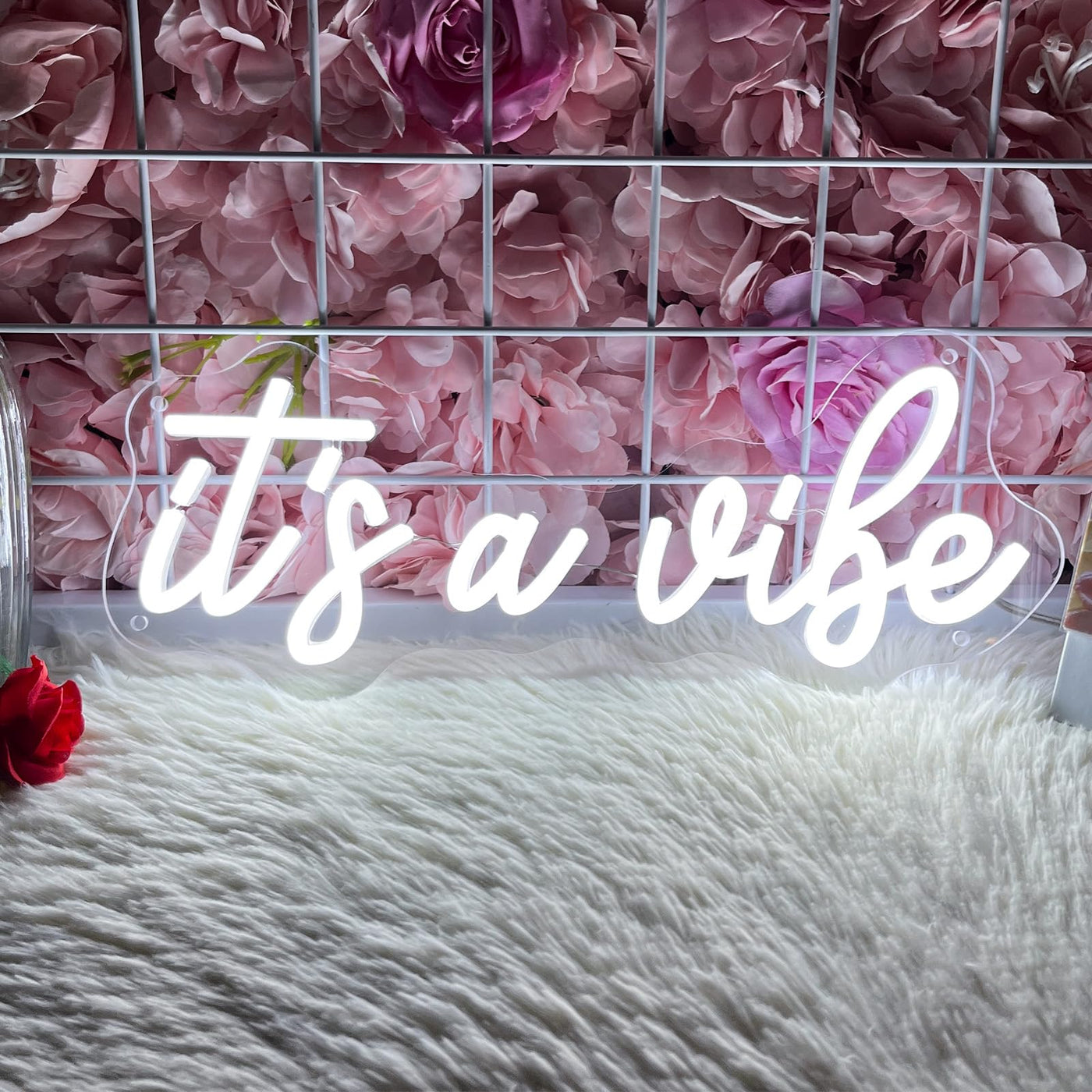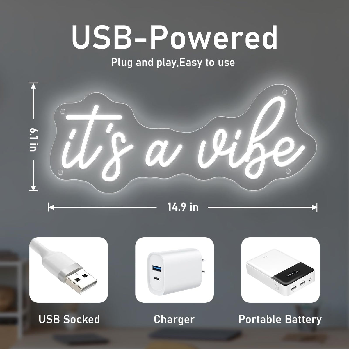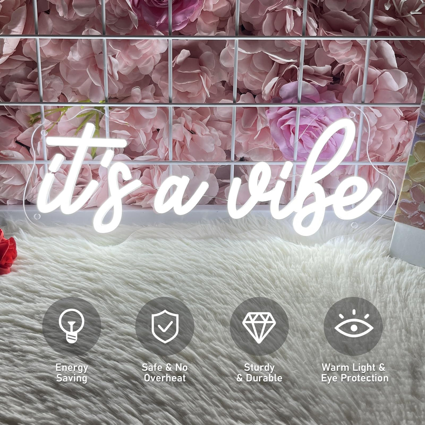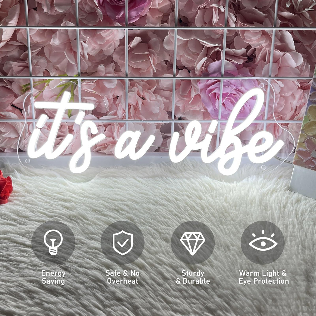 Add Instant Personality To Any Space With Our ItS A Vibe Neon Sign-Where Modern Style Meets Effortless Ambiance. Measuring 38Cm*15.5Cm This Perfectly Sized Piece Strikes The Ideal Balance: Compact Enough To Brighten Shelves Desks Or Cozy Nooks Yet Bold Enough To Command Attention On Feature Walls Making It A Versatile Fit For Bedrooms Home Bars Art Studios Or Party Corners.Crafted In A Sleek Cool White Glow It Emits A Crisp Contemporary Radiance That Elevates Decor Without Overpowering. Whether Your Style Leans Scandi Industrial Or Minimalist This Neon Sign Complements Interiors With A Fresh On-Trend Energy-Turning Ordinary Rooms Into Instagram-Worthy Spots That Feel Uniquely You.Built To Last Our Neon Sign Features well-made Led Tubes That Are Shatterproof Energy-Efficient And Designed To Shine For Up To 10 000 Hours. Safety Is Key: It Operates At A Low 5V With A Usb Powered Staying Cool To The Touch And Ensuring Worry-Free Use Around Kids And Pets.No Complicated Setup Required-Just Unbox Choose Your Preferred Method (Pre-Drilled Holes With Included Mounting Hardware Or Optional Adhesive Strips) And Plug In. In Minutes Youll Be Enjoying The Vibe: A Soft Inviting Glow That Sets The Mood For Relaxation Creativity Or Lively Gatherings.This Isnt Just A Light-Its A Statement. Let ItS A Vibe Define Your Space.