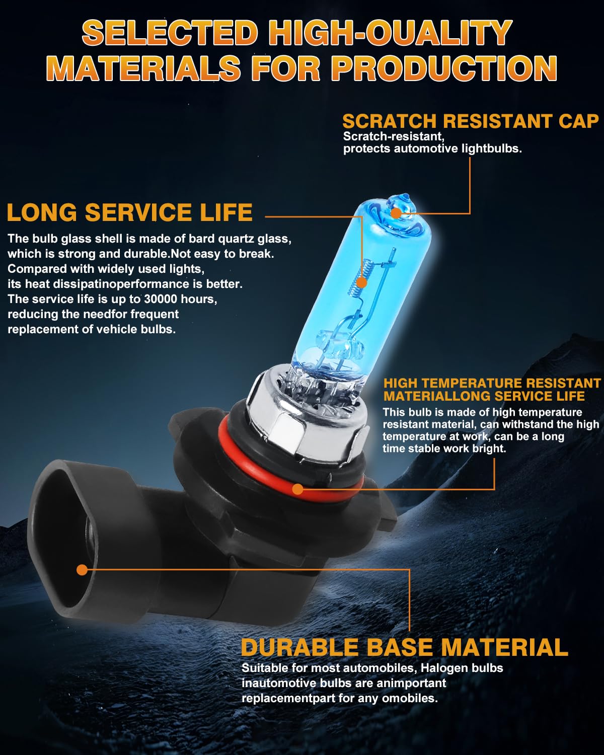 Q: What makes the IVBDQV bulbs more effective than standard halogen bulbs?A: The IVBDQV bulbs are constructed with higher quality materials that enhance their brightness by up to 300%. They also feature a super focused beam pattern that ensures clear visibility without blinding oncoming traffic, providing a safer driving experience.