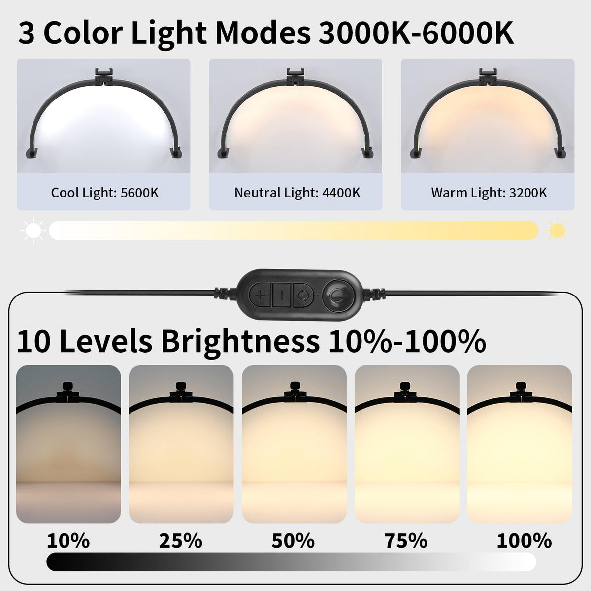 Q: What is the color temperature range of the iVict Half Moon Light?A: The lamp offers 3 color temperature settings ranging from 3000K to 6500K, allowing you to create the perfect lighting environment for different tasks.