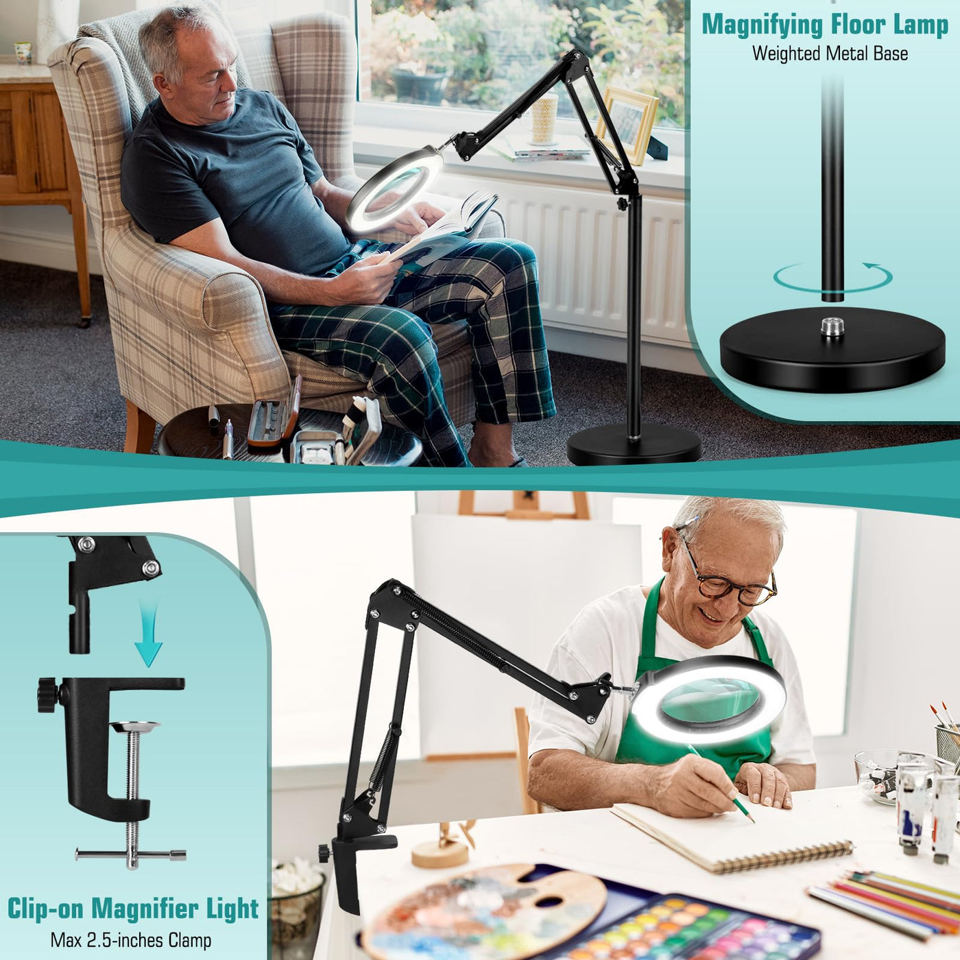 Ivmaie 10X Magnifying Floor Lamp With Light And Stand, 3-In-1 Adjustable Swivel Arm Led Magnifier, Black