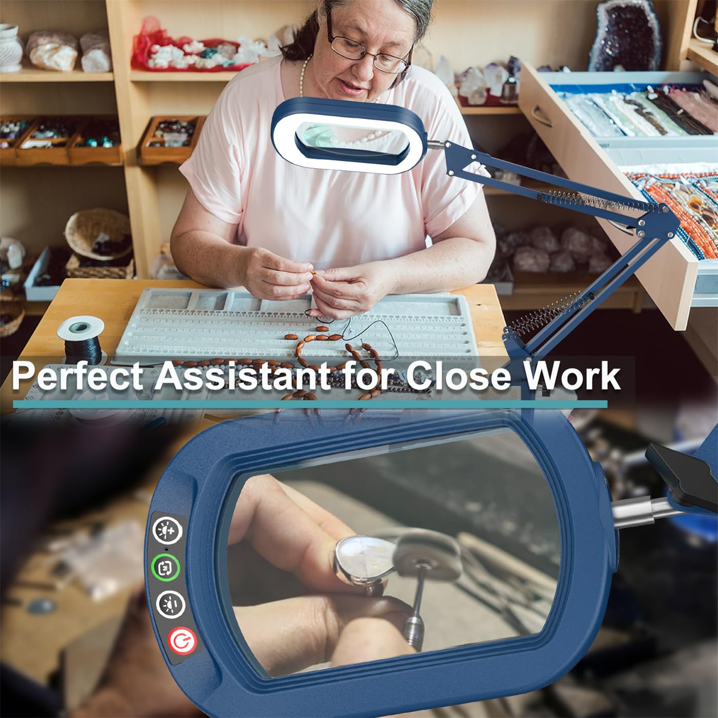 IVMAIE 10X Magnifying Glass with Light, Dimmable Clamp Desk Lamp, Swing Arm, Blue, Model JZ602