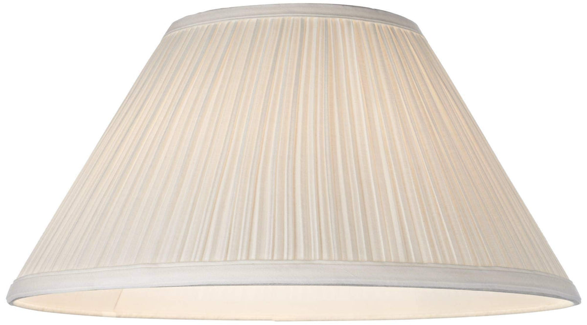 This mushroom pleated hardback shade in ivory white has a traditional look. The fold over trim adds a soft touch to the pleated shade. Spider fitting. From the Springcrest Collection of lamp shades.