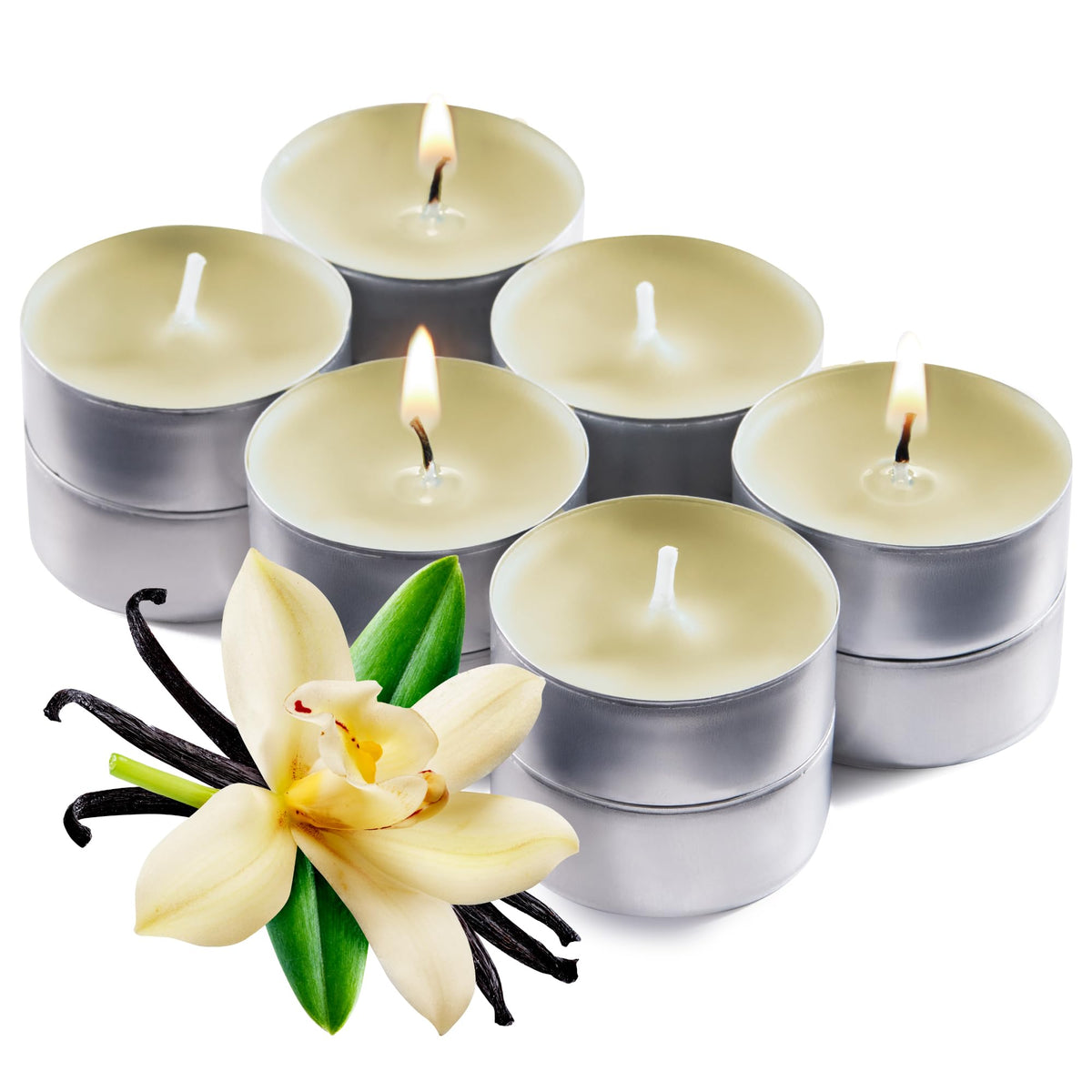 Ivory Scented Tealight Candles - Pack Of 12 Scented Tea Light Candles With Long Lasting Aromas - Vanilla Fragranced Ivory Tealight Candles - 4 Hour Burn Time