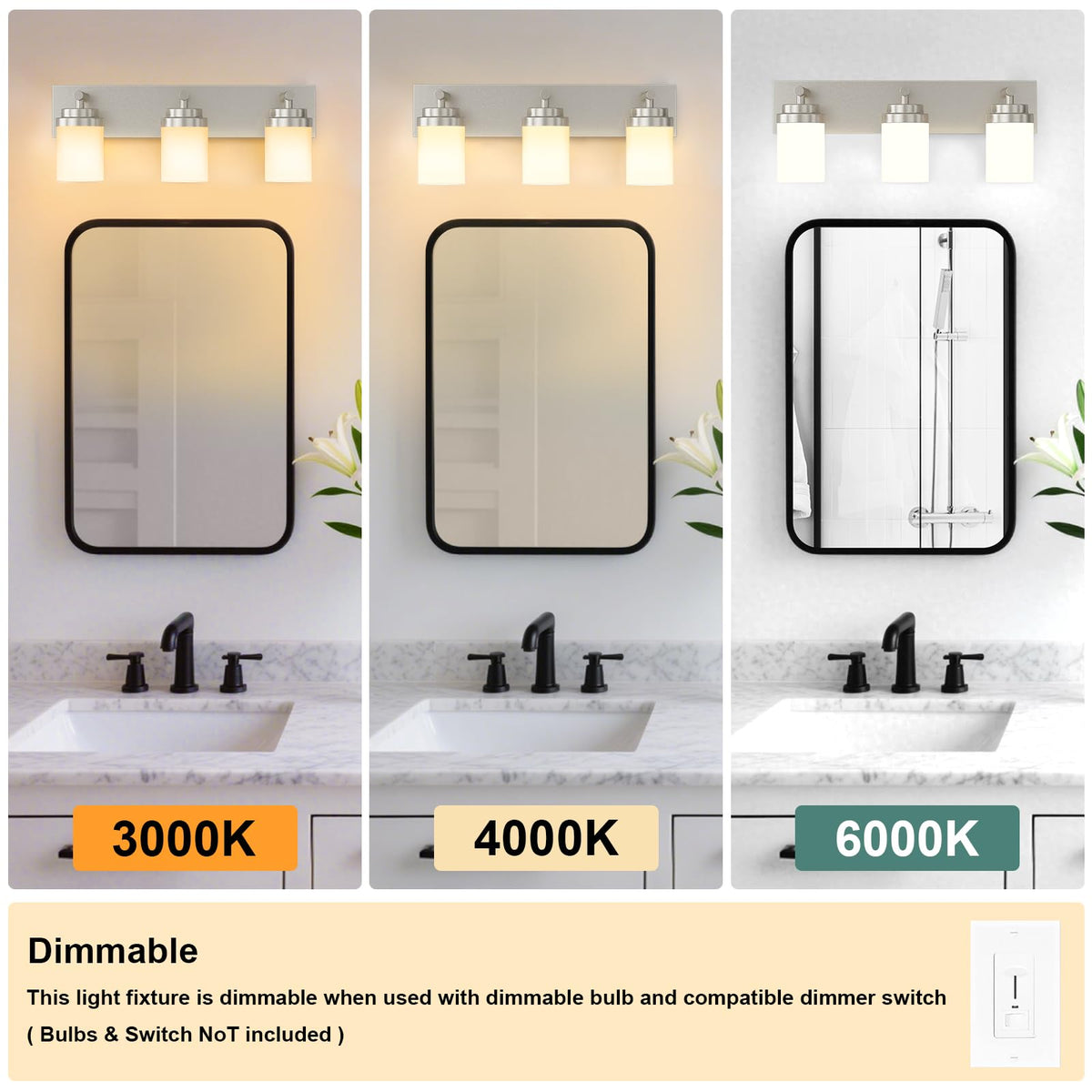 Izorro Bathroom Vanity Light Fixture 3-Light 22 Inch Brushed Nickel Bathroom Light Fixtures Over Mirror With White Glass Shade Modern Farmhouse Vanity Lights Rustic Restroom Lighting Fixtures
