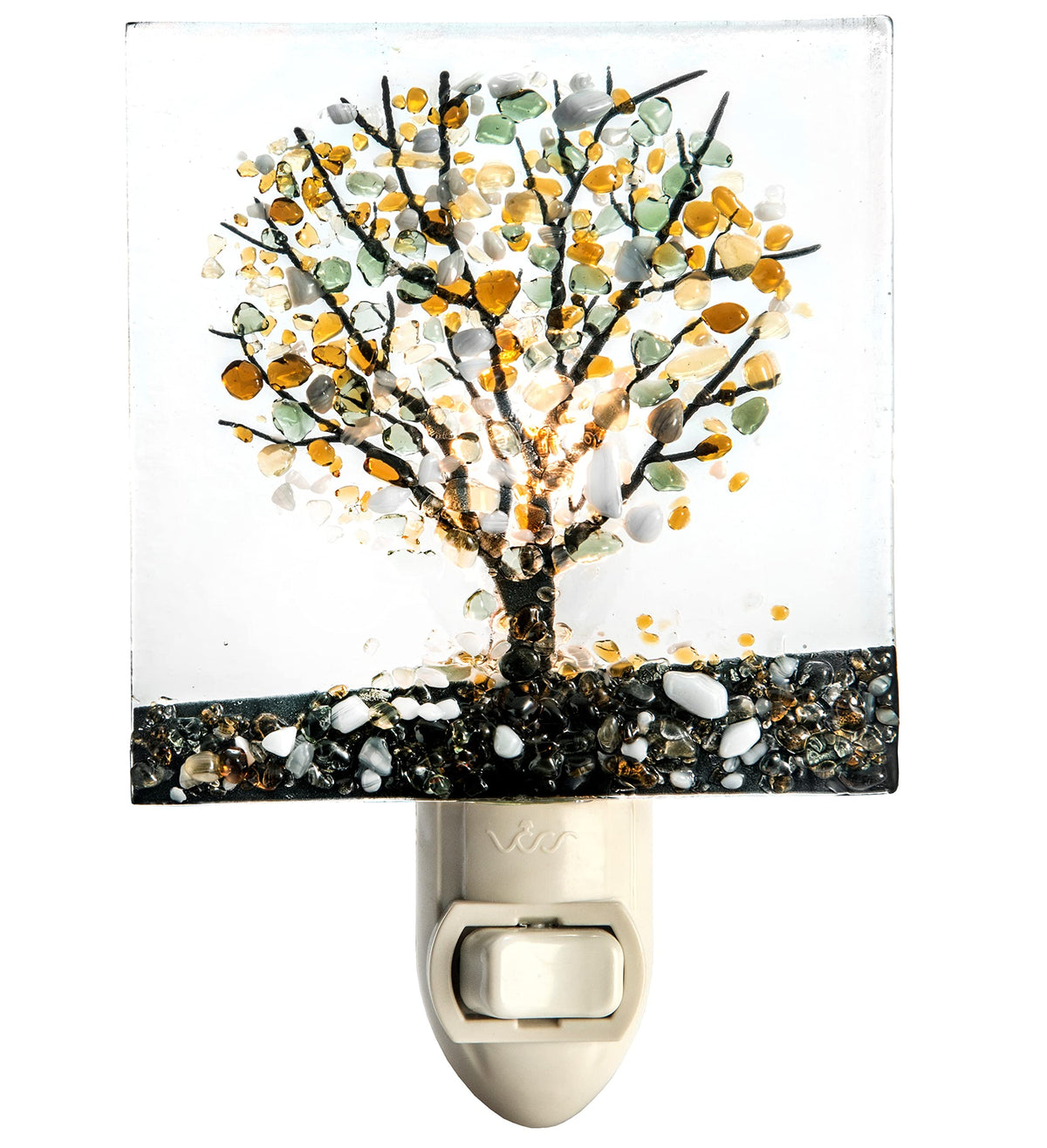 Bring A Little Of The Outdoors Into Your Bathroom, Bedroom, Or Kitchen With This Decorative Tree Night Light. Or Use As An Accent Light In Dark Corners Or Hallways And Enjoy The Fun Colors. Chips Of Stained Glass In Shades Of Amber, Dark Brown, Ivory And Olive Green Are Meticulously Arranged Onto The Translucent Clear Glass And Fired In A Kiln Permanently Bonding The Pieces And Softening The Edges. (Note The Bulb Of This Night Light Is Visible Through The Clear Glass Background.) This Wall Plug In Night Light Fits Sockets As Shown In Our Photos. Wall Plug In Night Light Complete With Base And Clear Bulb. A Great Gift For A Special Someone Or, Add To Your Own Home Decor Today! See Our Full Selection Of Glass Decorative Night Lights, As Well As Nature-Themed Home Accents In Our Amazon Store.