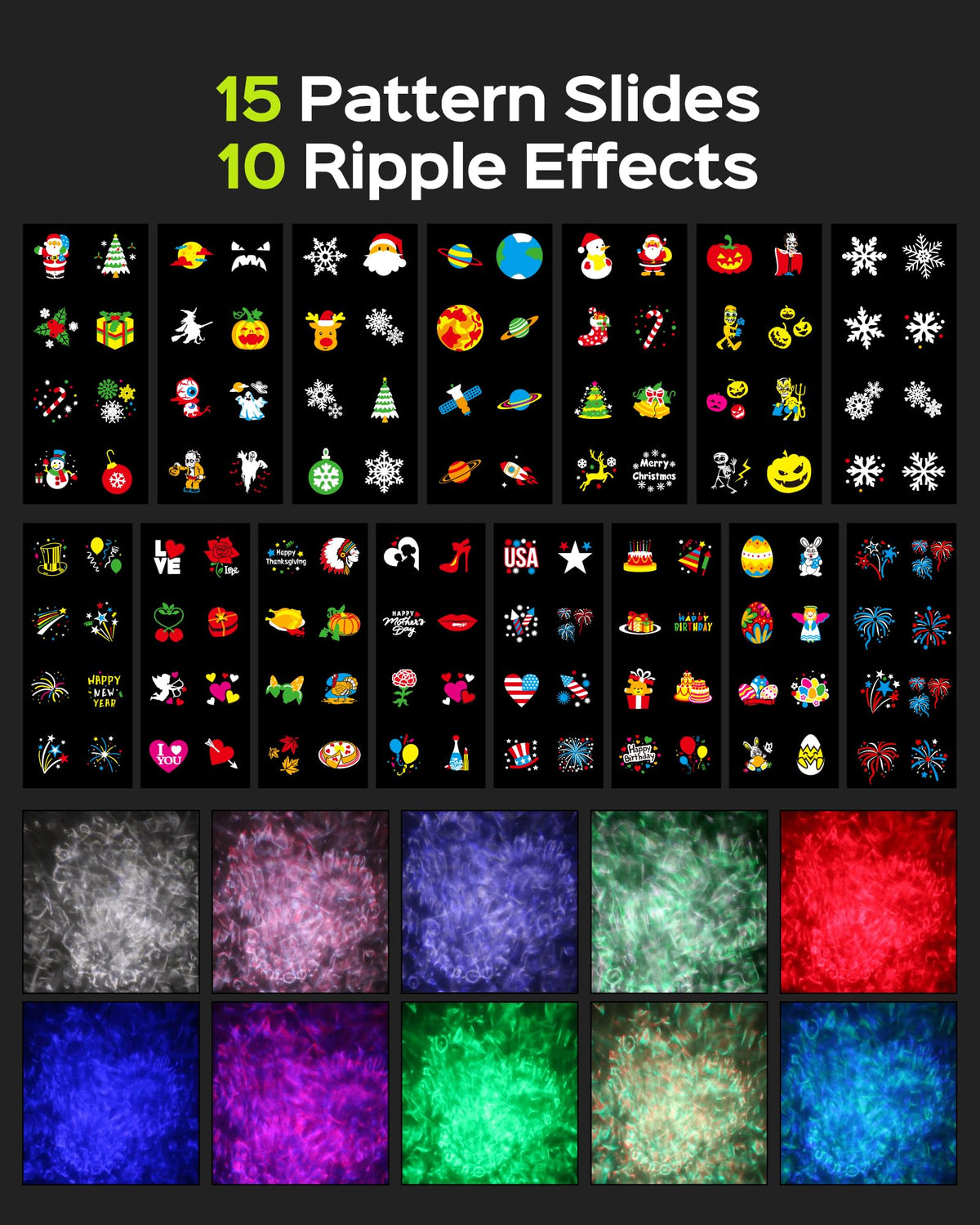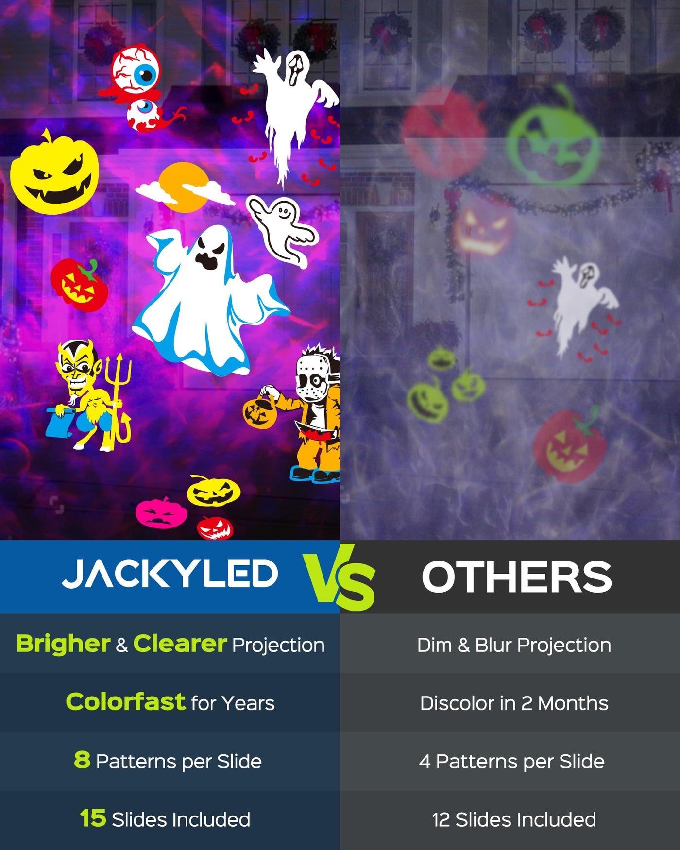 JACKYLED Christmas Projector Lights Outdoor, 2 in 1 HD Holiday Projector with Remote Control, Timers, IP65 Waterproof Halloween Decorations Outdoor (15 Slides 10 Colors)