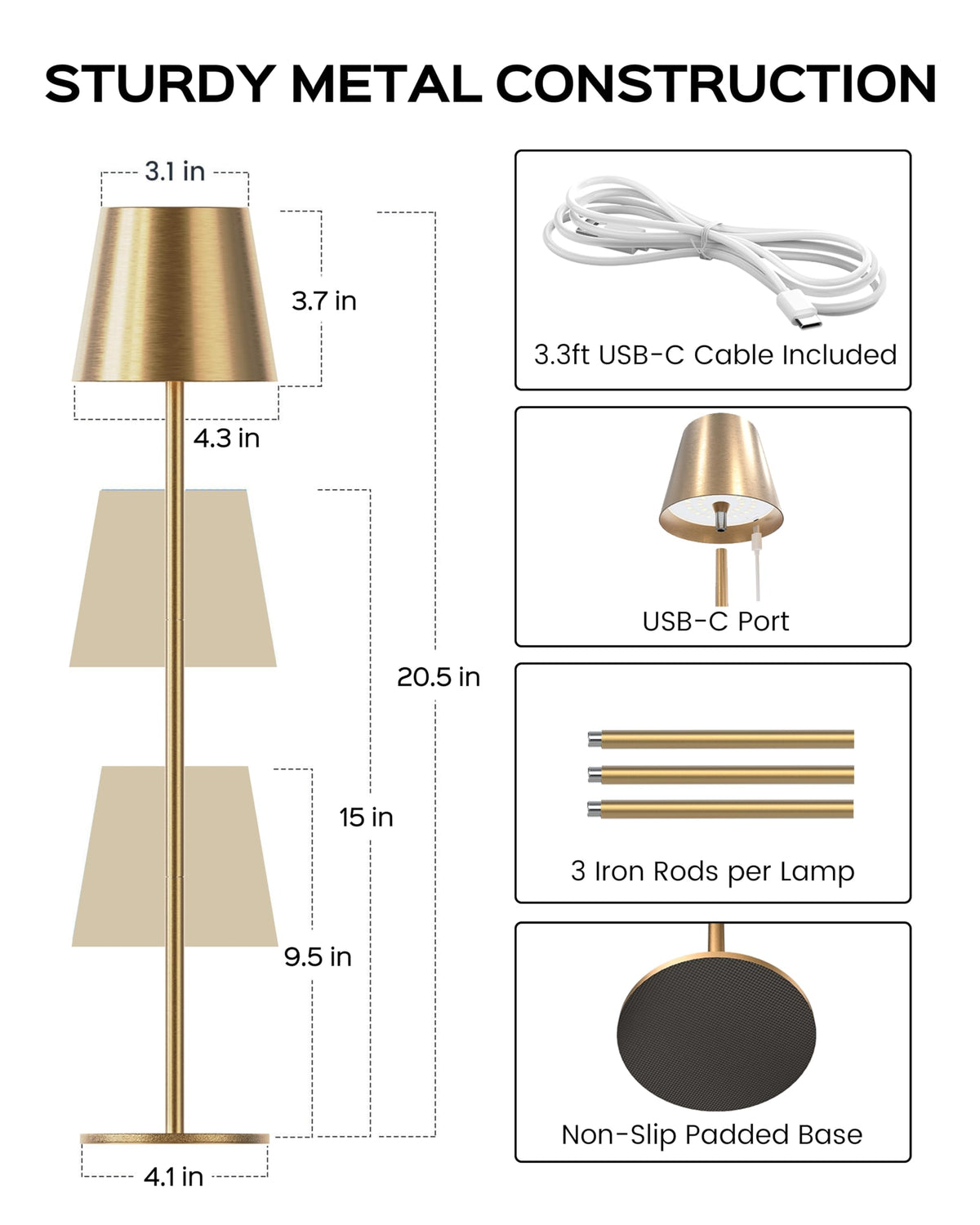 - **Durable & Versatile Design**: Constructed from sturdy metal, this gold table lamp is both stylish and durable. Its portable design makes it a chic addition to home decor, as well as a practical light source for cafes, kitchens, bedside tables, and outdoor adventures.