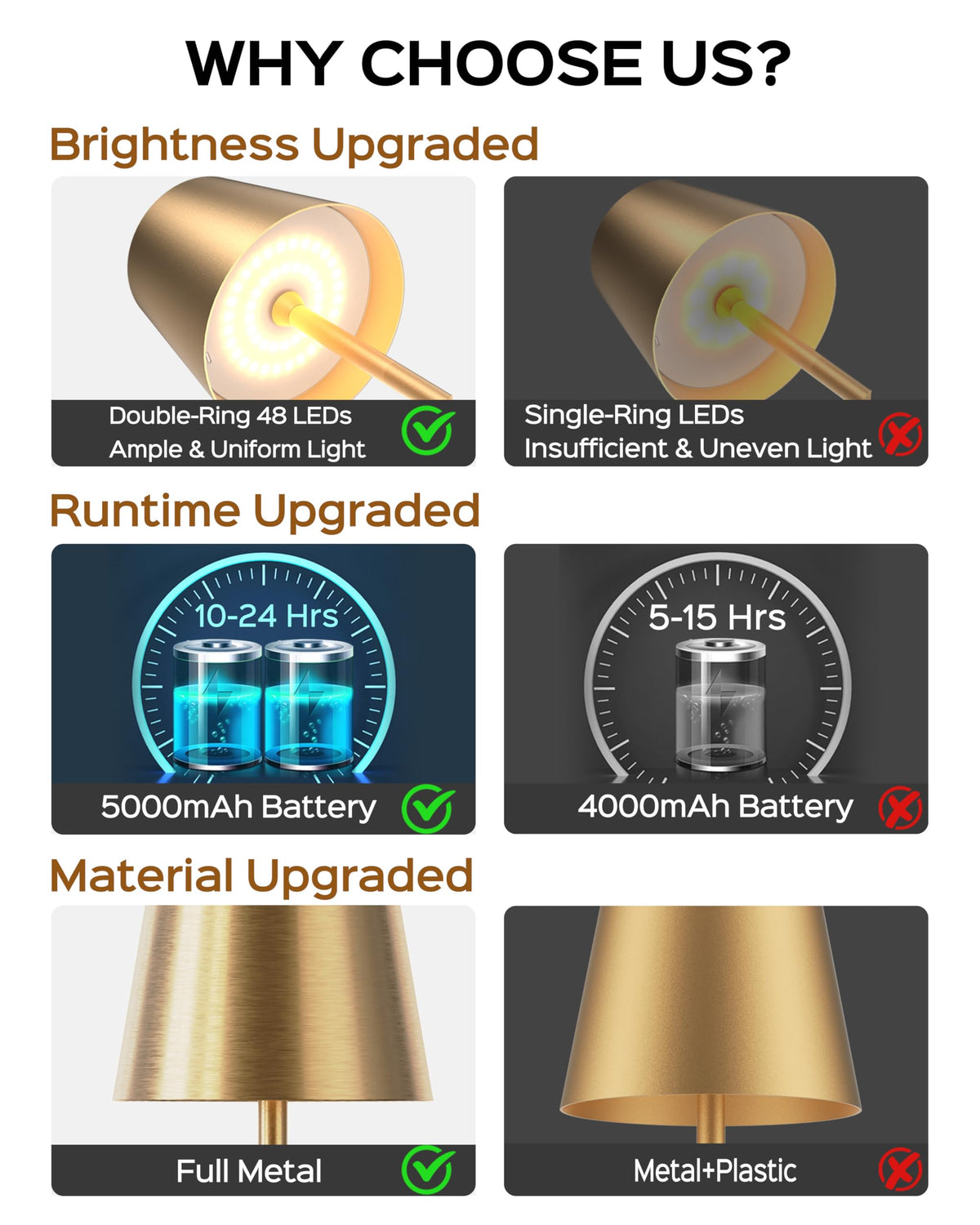 - **Robust 5000mAh Battery**: Equipped with a powerful rechargeable battery, this lamp provides 10-24 hours of runtime on a single charge, depending on brightness levels. Enjoy the convenience of cordless lighting that lasts through your events.