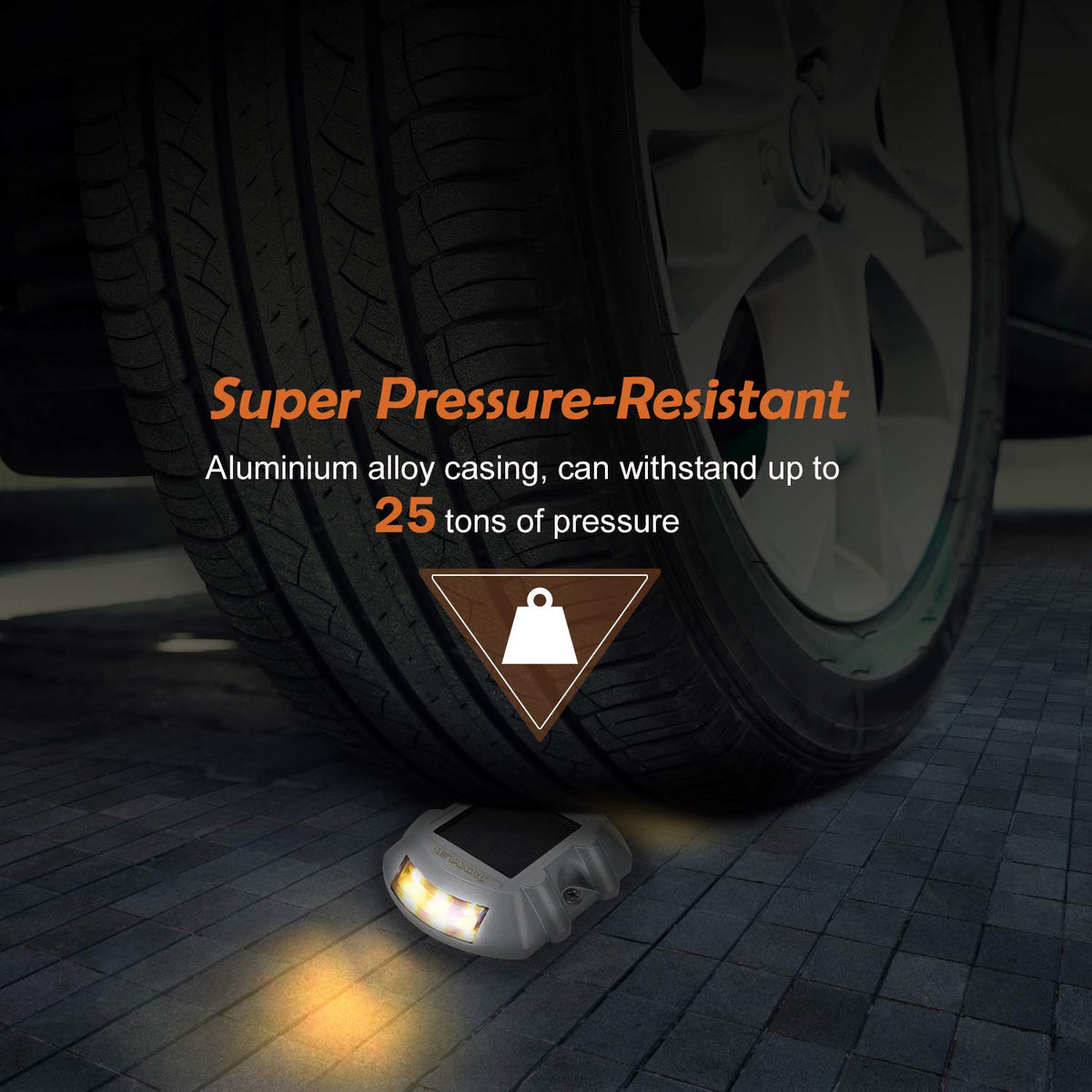 Constructed with upgraded solar panels, these lights offer improved charging efficiency, allowing for a full charge in just 4 hours of direct sunlight. Once charged, the integrated 600mAh battery provides long-lasting illumination for up to 72 hours, automatically activating at dusk and turning off at dawn. The soft warm lighting produced by the six well-made LED light beads ensures a gentle glow, enhancing safety by illuminating areas that may otherwise be dark and hazardous. Built to withstand harsh weather conditions, the lights have an IP68 rating, making them dustproof and waterproof. The sturdy aluminum alloy casing can endure up to 25 tons of pressure, ensuring durability even in high-traffic areas. Additionally, the upgraded on-off switch helps prevent battery loss during extended periods of non-use.