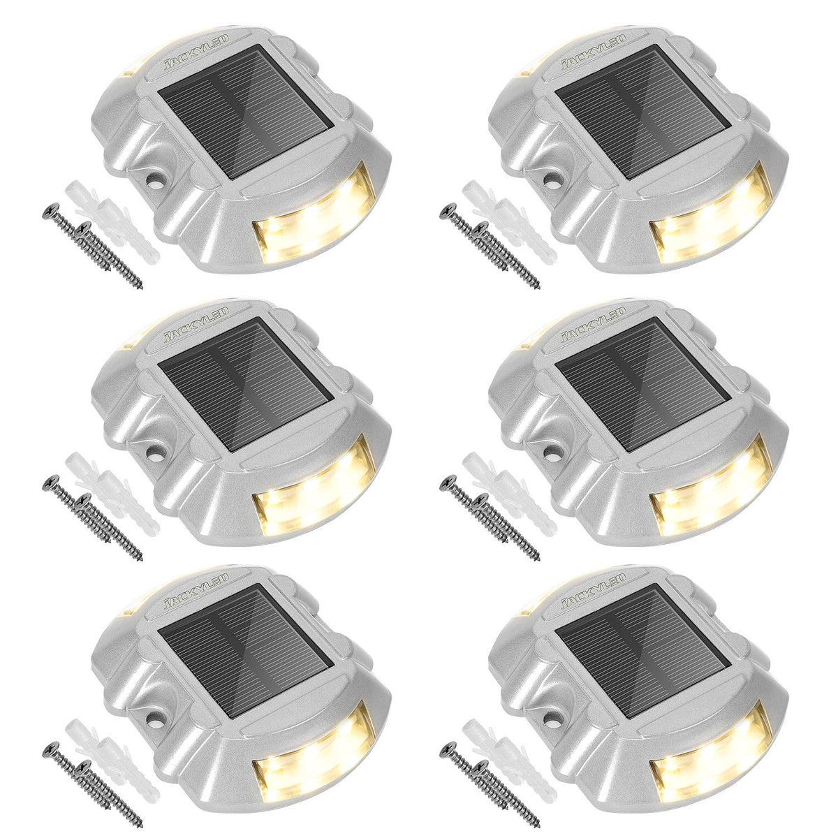 JACKYLED Solar Dock Lights - Warm White 6-Pack, Waterproof LED Driveway Markers for Steps, Stairs, Garden, Sidewalk, Model K-SDL