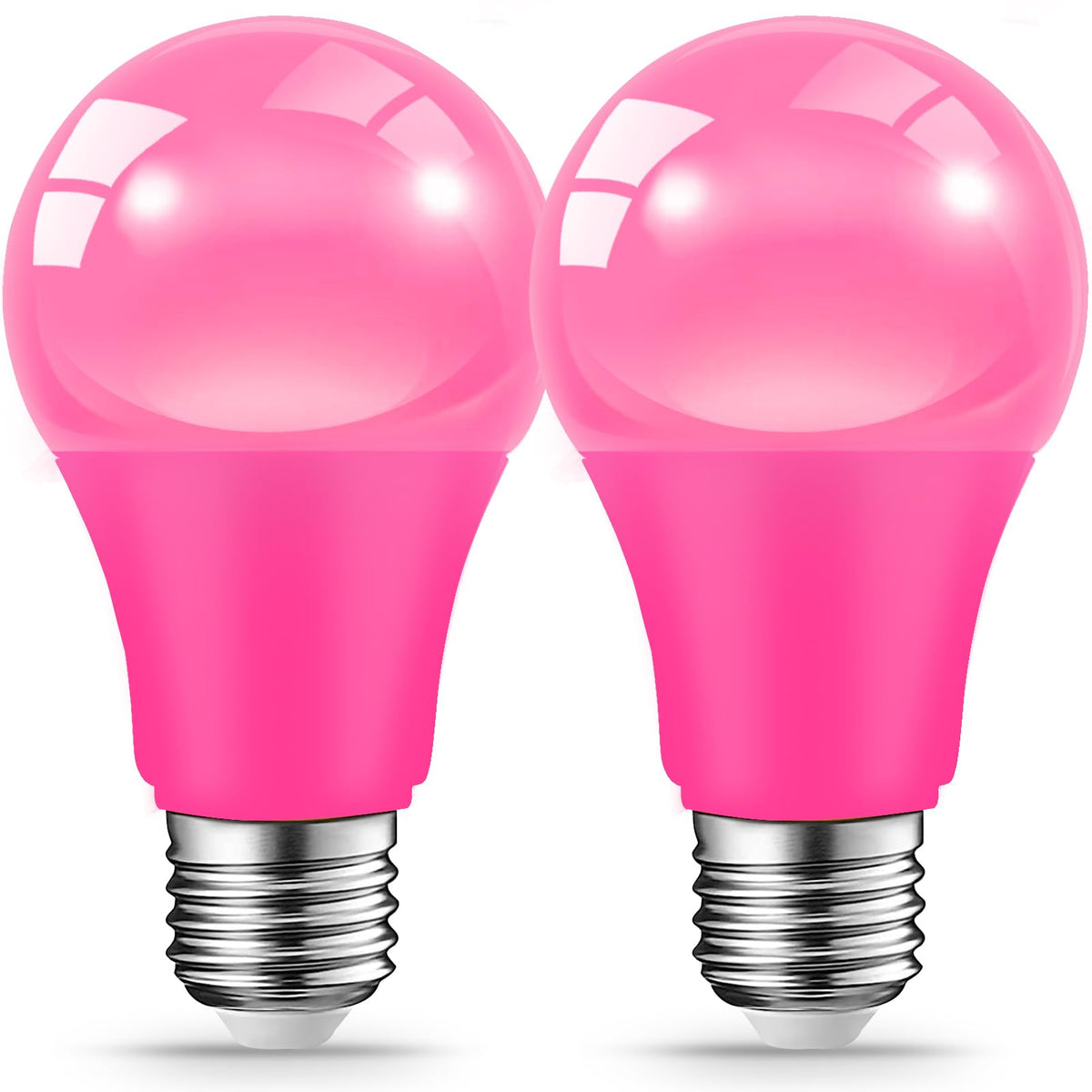 Jaheks Led Pink Light Bulbs For Outdoor Indoor, 9W(60W Equivalent) E26 Base Pink Bulb For Christmas, Halloween,Wedding,Party,Bar,Porch,Holiday Lighting,Home Decor, 2-Pack