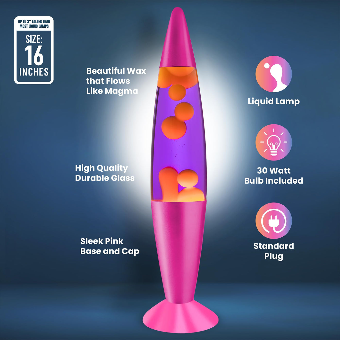 Q: What is the size of the Jambo Liquid Lamp?A: The Jambo Liquid Lamp has a height of 16 inches, making it a perfect size for various settings like a nightstand or desk.
