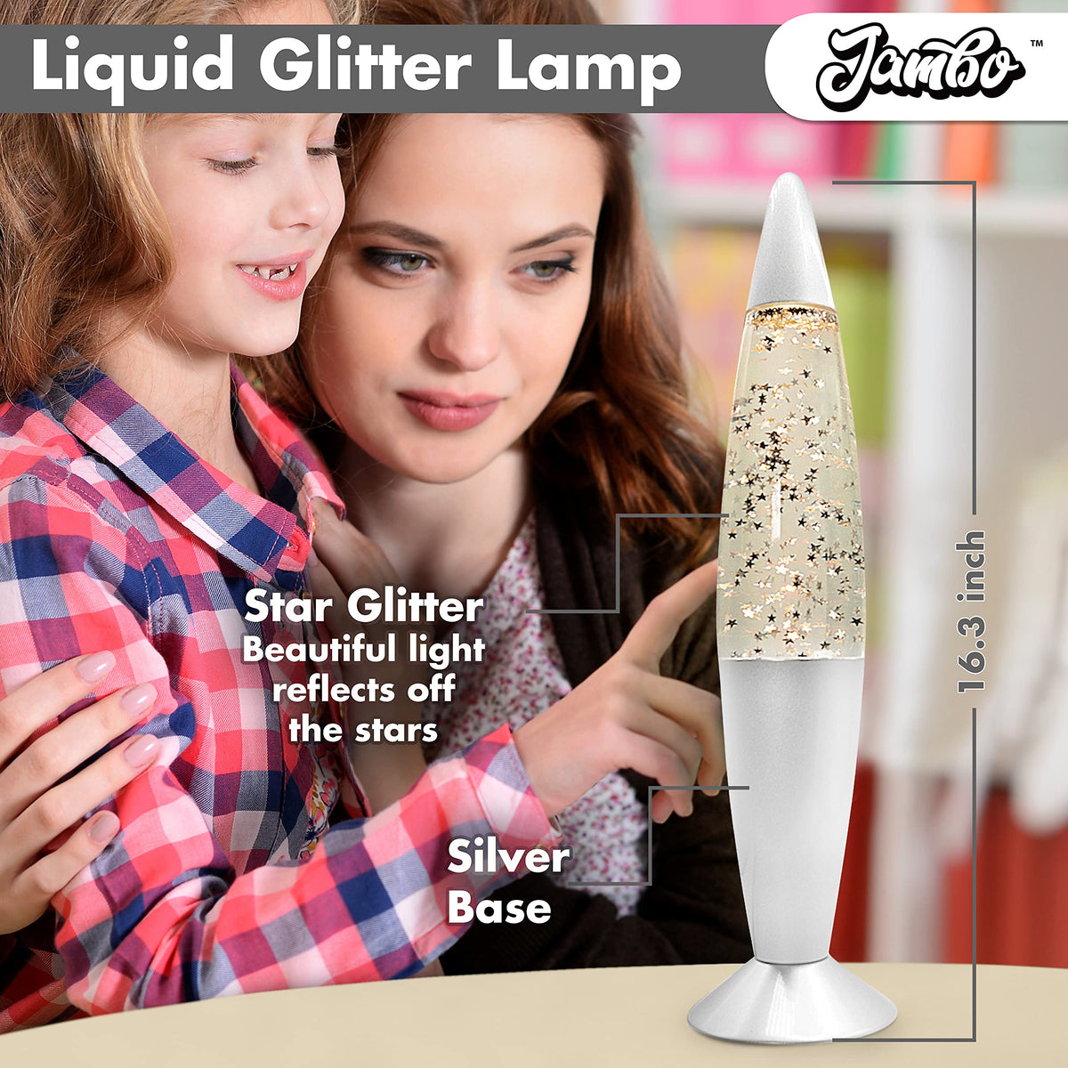 Jambo 16-Inch Silver Star Glitter Lamp I Beautiful Liquid Lamp I Entertaining For Adults And Kids I Perfect Holiday Gift