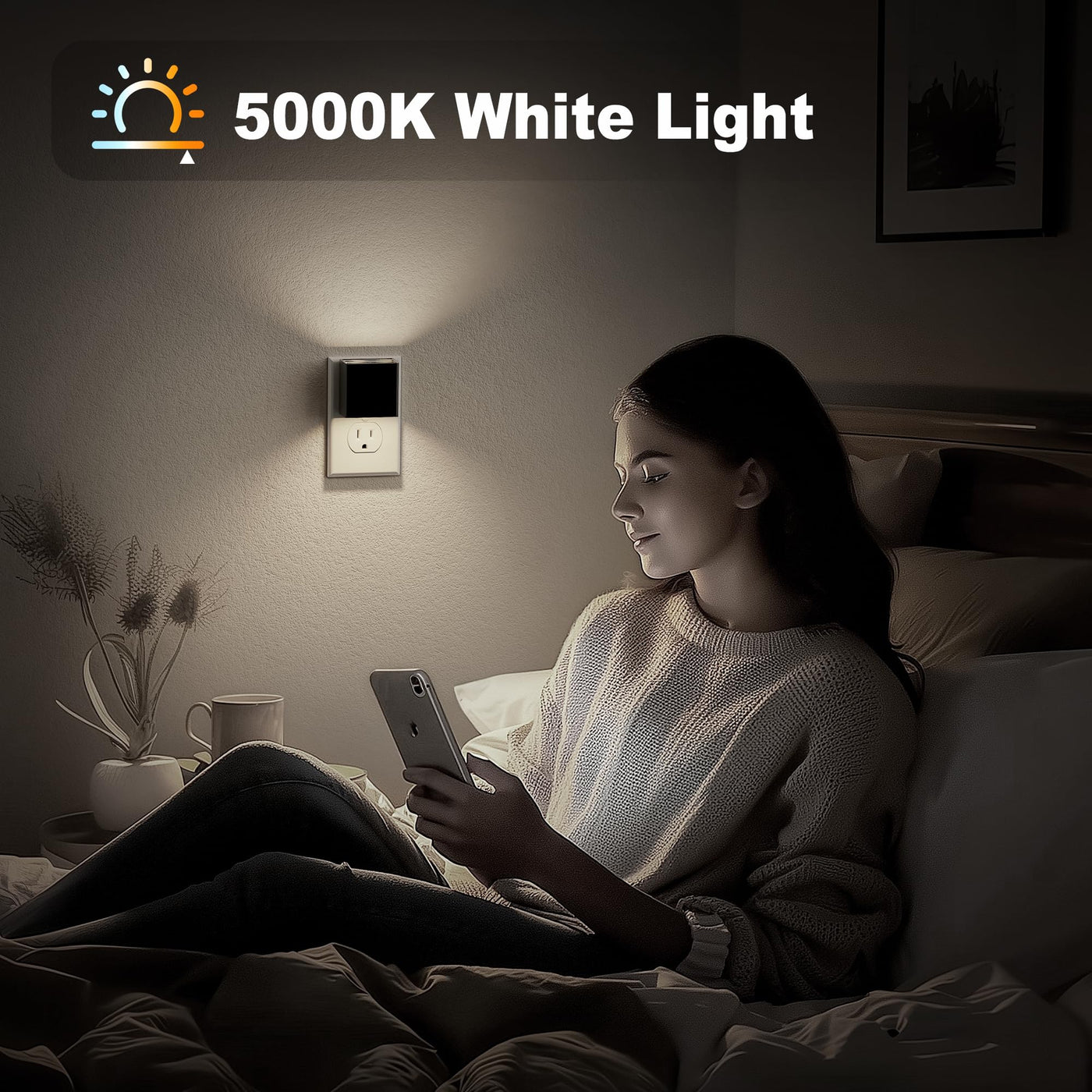 Jandcase Night Light, Automatic Night Lights Plug Into Wall, 2 Pack Modern Night Lights With Auto Light Sensor, 5000K Brightness
