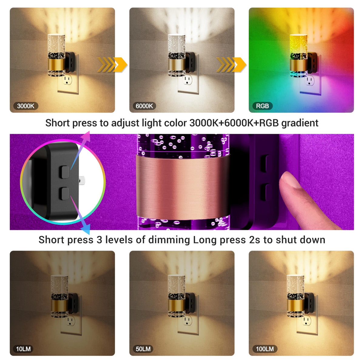 Jandcase Night Lights Plug Into Wall,2 Pack Color Changing Night Light For Kids With 1 Remote Control, 3000K+Rgb Led Nightlight
