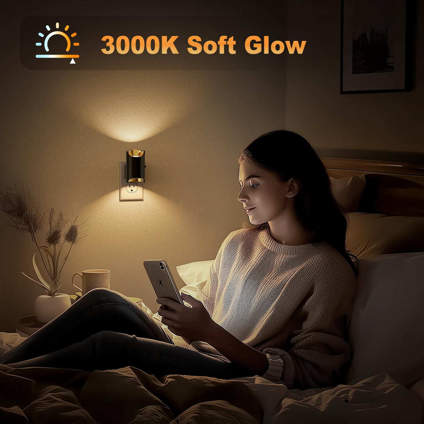 Jandcase Night Lights Plug Into Wall, 2 Pack Modern Led Night Light For Kid, Dusk To Dawn Sensor, Soft White 3000K, 0-100Lm Dimm