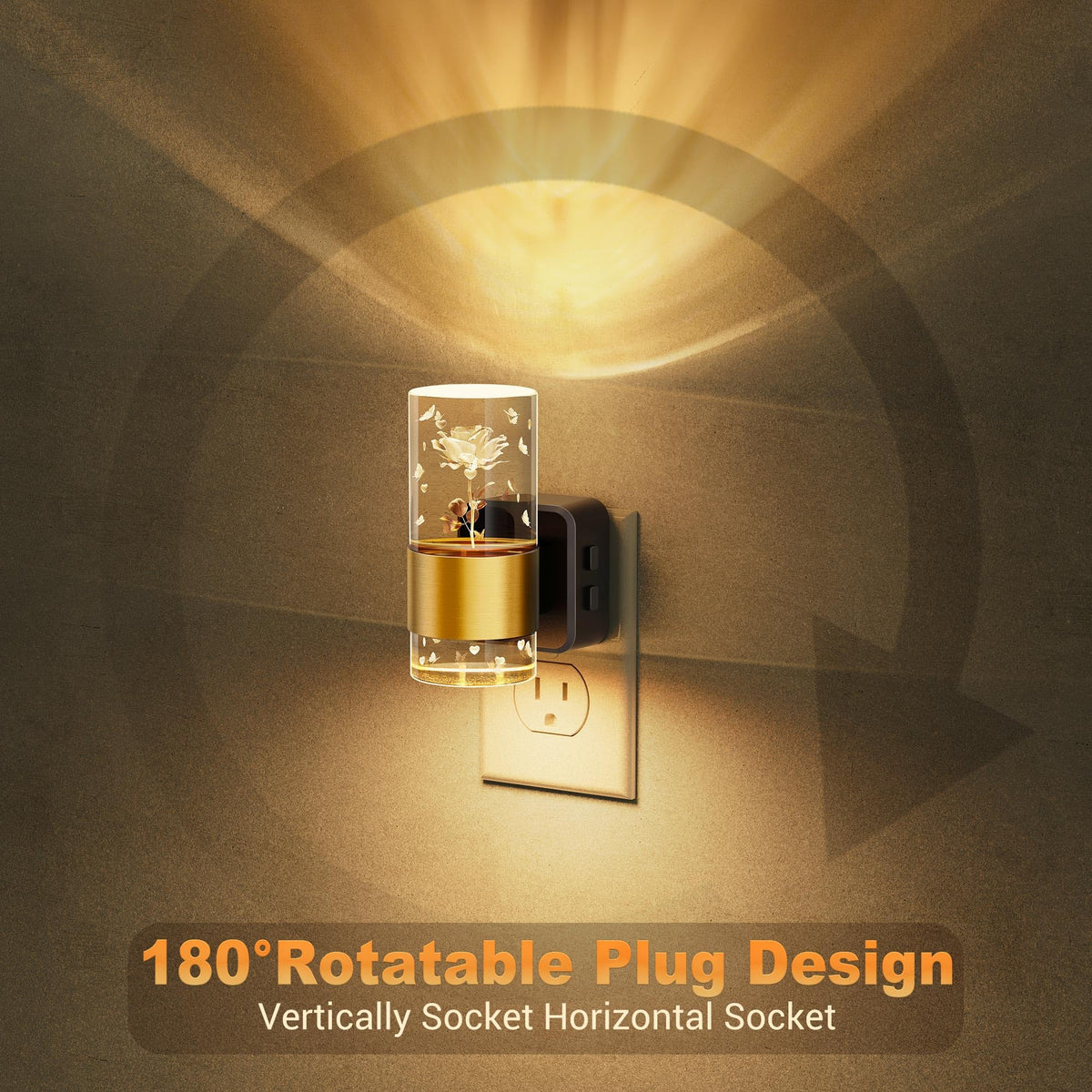 Jandcase Night Lights Plug Into Wall,2 Pack Rose Carved Night Light For Girls, 3000K+Rgb 10-Color Led Nightlight With Dusk To Da