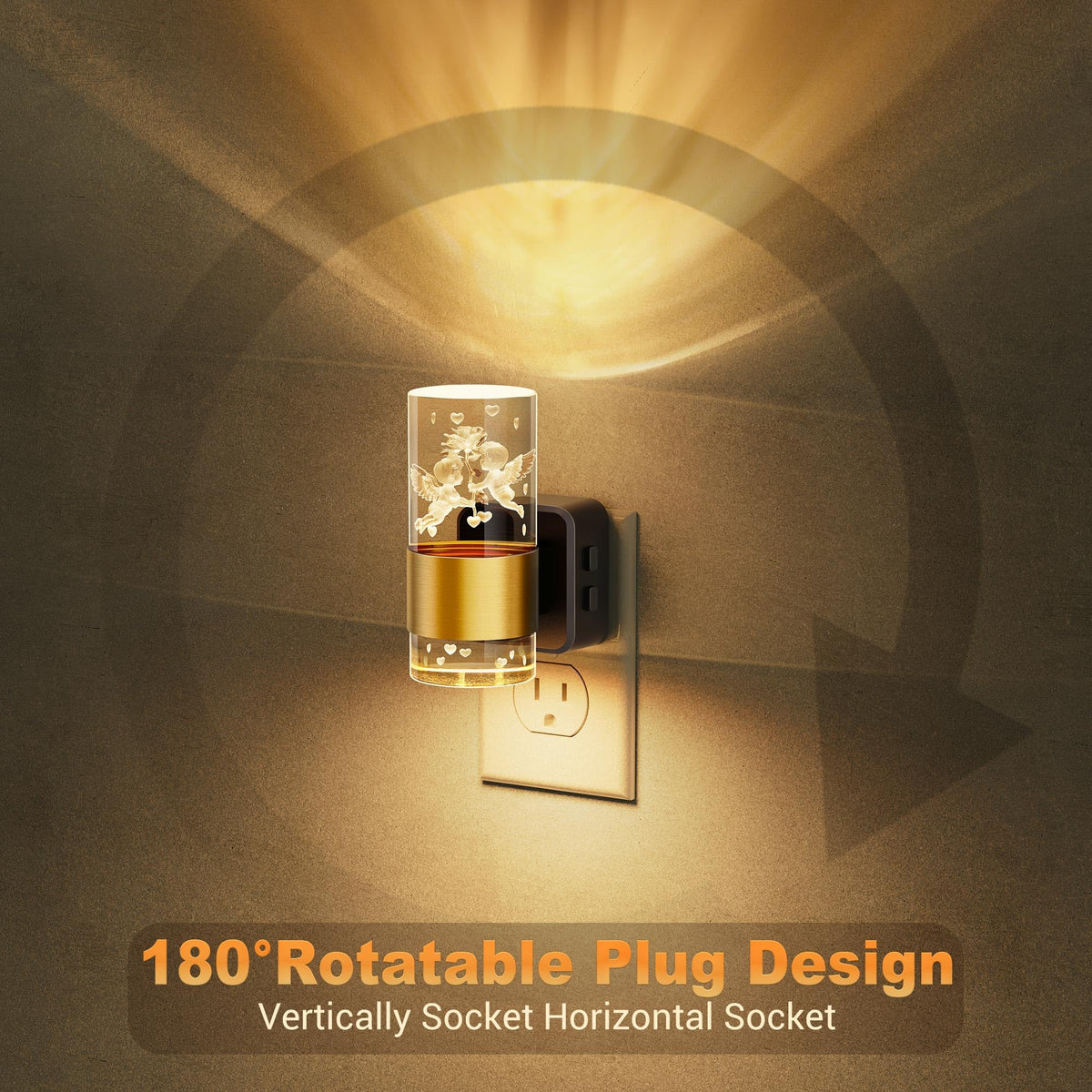 Jandcase Night Lights Plug Into Wall,Angel Night Light, 3000K+Rgb 10-Color Led Nightlight With Dusk To Dawn Sensor, 10/50/100Lm