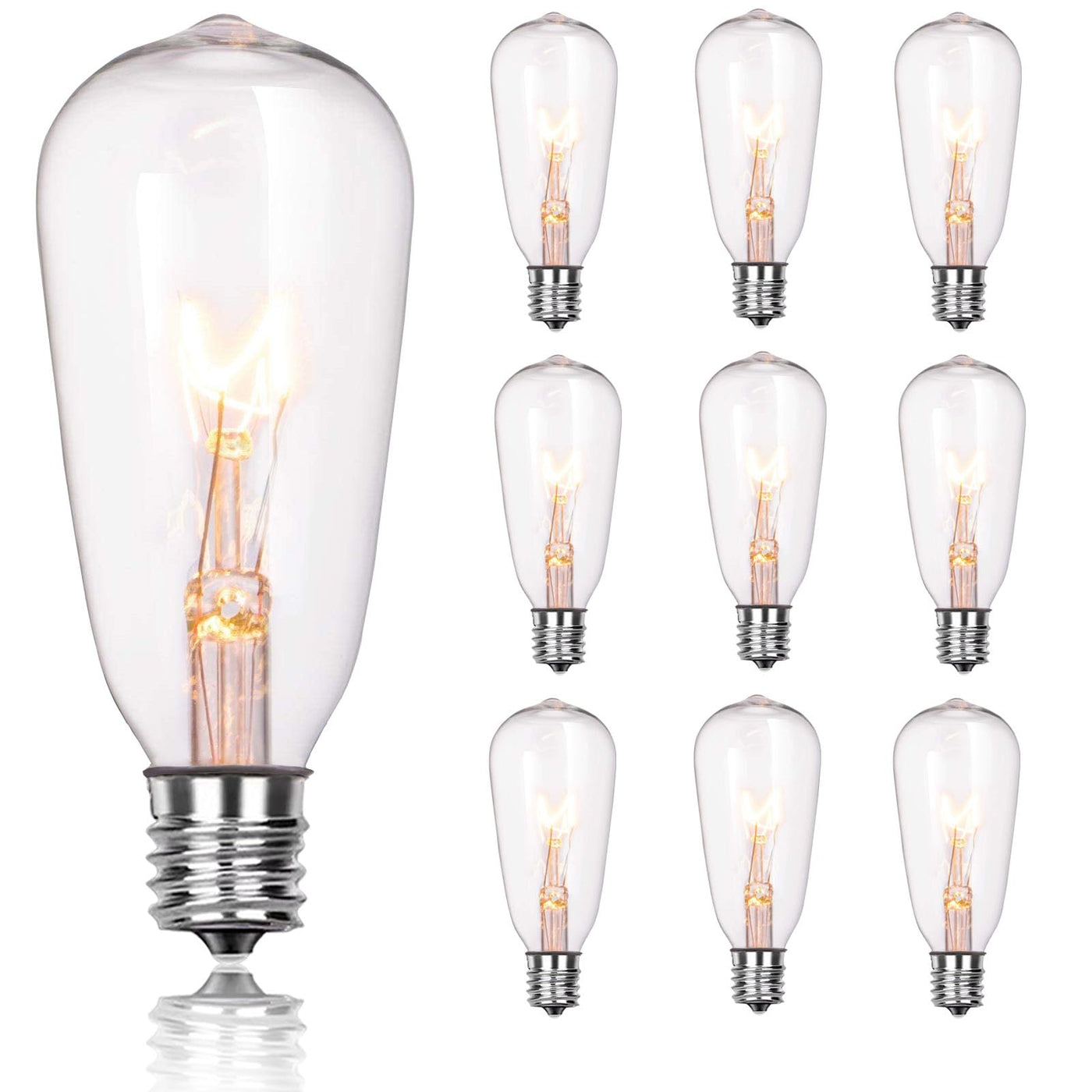 Jasneniebo 10-Pack Edison Replacement Light Bulbs, 7W E17 Screw Base St40 Replacement Clear Glass Light Bulbs For Outdoor Patio