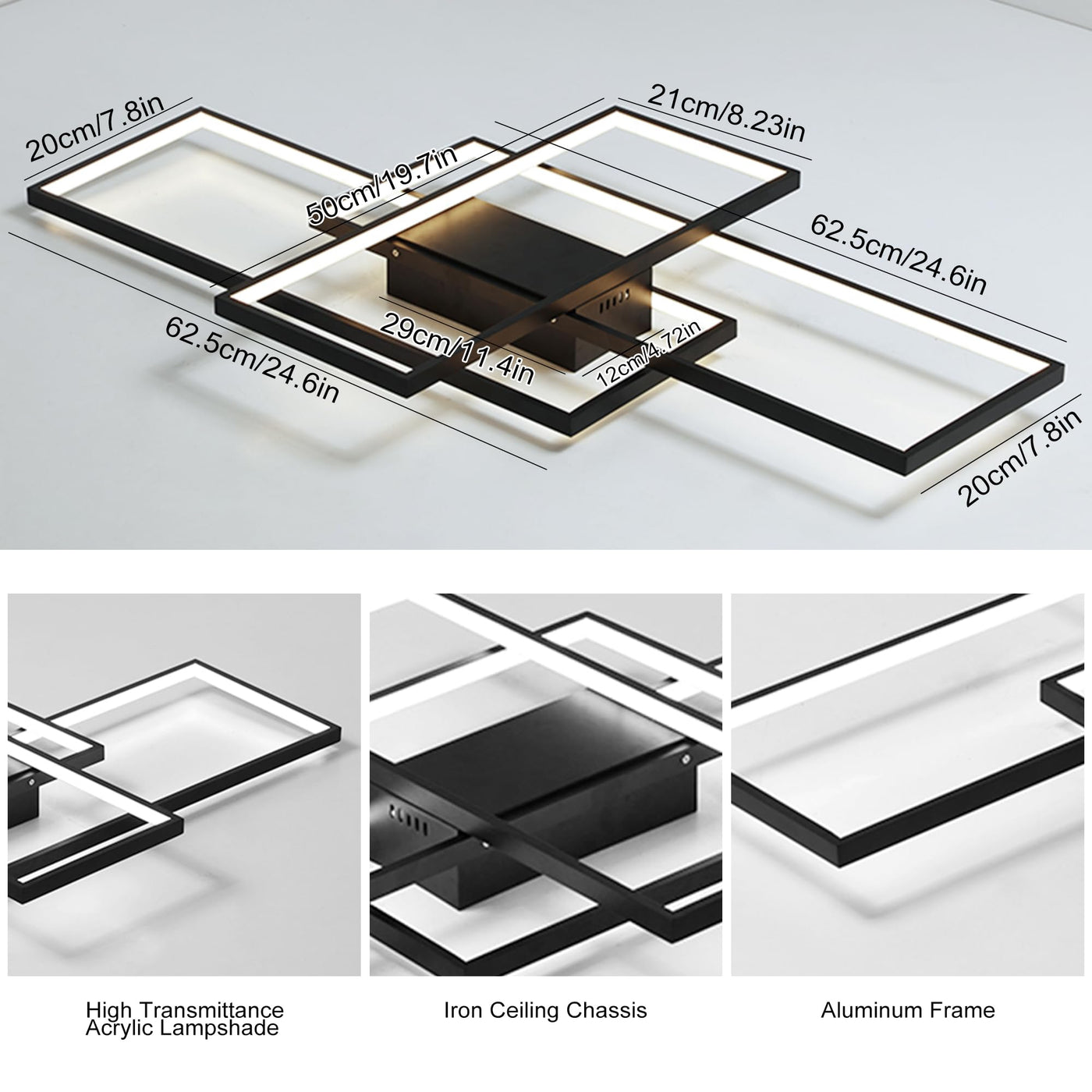 This Chandelier Light Are Suitable For Foyer, Laundry Room, Living Room, Entryway. Semi Flush Mount Kitchen Light Fixture With Elegant And Rustic Look, Not Only A Farmhouse Lighting, But Also A Modern Beautiful Decoration. Product Information Product Name: Black Flush Mount Ceiling Light Style: Modern Size: Lamp Body Lenght 35.4 In/90 Cm, Width: 19.7In/50Cm, Material: Metal, Aluminum Light Source: Led Strips Suitable For Living Room, Bedroom, Office, Hallway, Basement Voltage: 110V, Power 75W Package List Ceiling Light Fixture X1 Installation Instruction X1