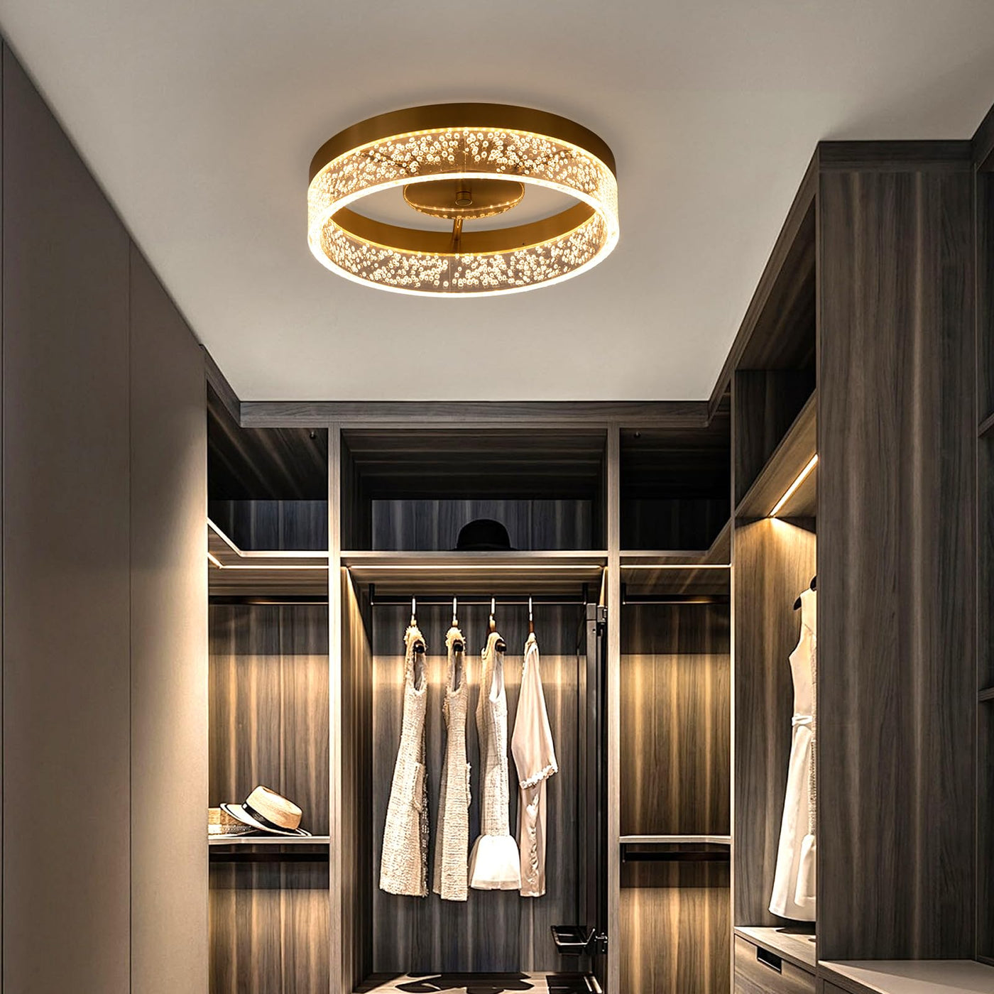 Jaycomey Modern Led Ceiling Light Fixture, 11.65'' Flush Mount Kitchen Lighting Gold With Clear Seeded Acrylic Lampshade,Round C