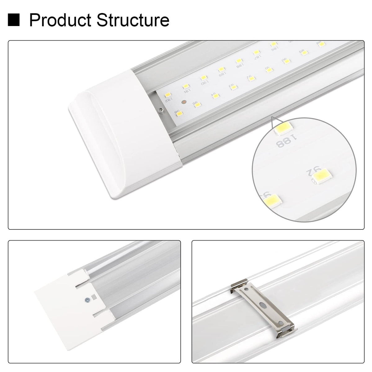 Features: Highly Efficient: 100 Lumens Output Per Watt. No Flicking: Eye Protection Give You Healthy And Enjoyable Light Energy Saving: Low Power Consumption And Low Thermal Output. Lower Maintenance Costs Compared To Existing Lighting. Long Life Span: 50000 Hours - Lasts Up To 10X Longer Than Conventional Lighting. 4000K: Used In Homes With A Need Of A Soft White Lighting Atmosphere. 6500K: Used In Offices, Working Areas, Shopping Malls And Other Commercial Areas That Needs Super Bright Lighting Specifications: Wattage: 20W?30W?40W?50W Luminous Flux: 1800?2700?3600?4500Lm Led Chip Type: Smd2835 Beam Angle: 130 Input Voltage: Ac110V Super Bright & Energy Efficient A Perfect Replacement For Conventional Bulbs, But You Can Save Up To 80% Power, Designed For Minimal Heat Dispersion And Wide Beam Angle For Shadow-Free Coverage. Package Included Led Batten Light * 2