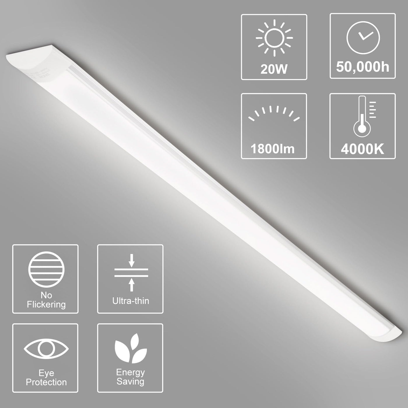 Jazoctig 2-Pack 2Ft Led Batten, Close To Ceiling Light Fixtures, 20W, Ultra-Thin Day Light, 4000K, Ip20, Led Ceiling Light For G