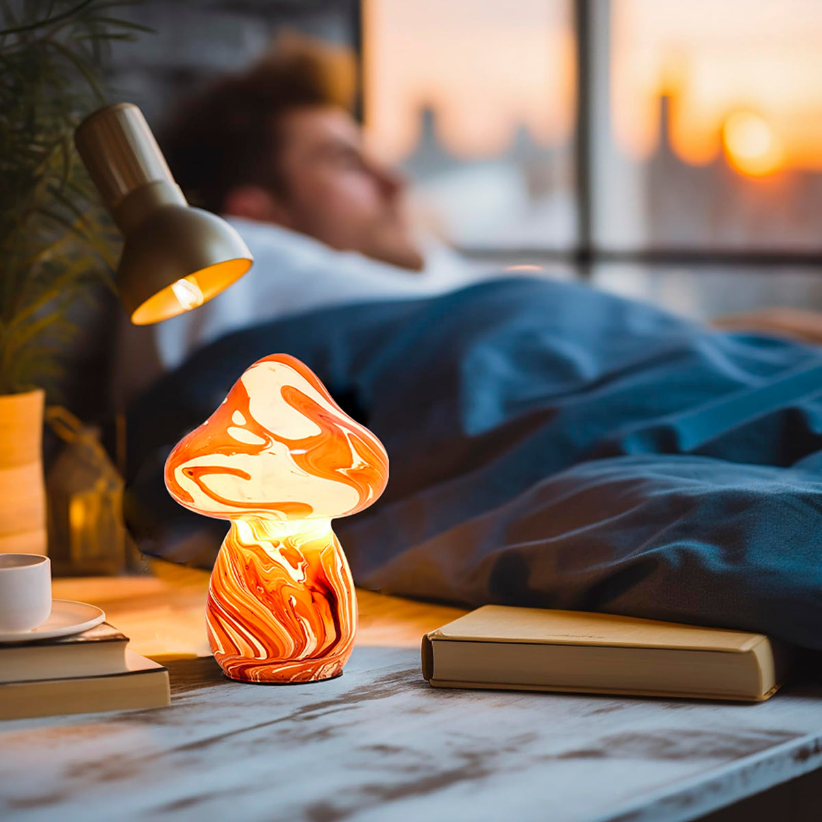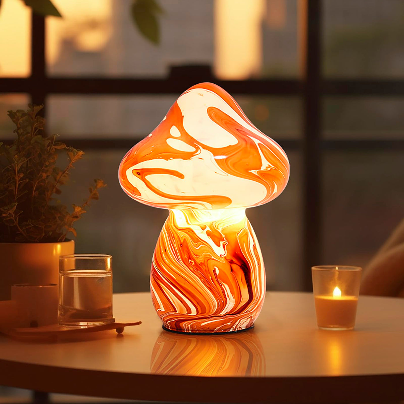 Q: What type of bulb does the JBGIYOSG Glass Mushroom Table Lamp use?A: The JBGIYOSG Glass Mushroom Table Lamp comes with a built-in LED bulb, which provides a soft and ambient glow, perfect for creating a cozy atmosphere.