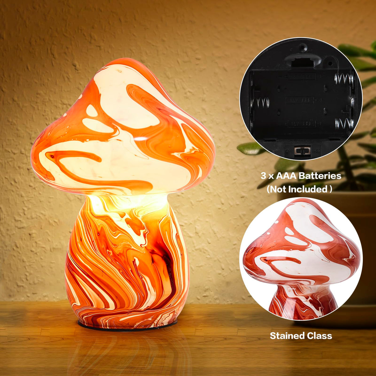Introducing Our Charming Mushroom Glass Table Lamps - The Perfect Addition To Your Home D Cor Collection. Crafted With Care From High-Quality Glass, This Whimsical Lamp Is Designed To Bring Warmth And Coziness To Any Room In Your Home. With Its Adorable Mushroom Shape And Soft Ambient Glow, This Mushroom Lamp Adds A Touch Of Enchantment To Bedrooms, Studies, Living Rooms, And More. Its Compact Size, Standing At 7.87 Inches Tall With A Cap Diameter Of 4.72 Inches, Makes It Ideal For Versatile Placement On Bedside Tables, Shelves, Desks, Or Any Surface You Desire. What Sets Our Glass Mushroom Table Lamp Apart Is Its Wireless Design, Powered By Three Aaa Batteries (Not Included). This Means You Can Enjoy The Convenience Of Placement Without The Need For Cords Or Outlets, Giving You The Freedom To Position It Wherever You Please. Equipped With A Non-Removable Led Bulb, This Mushroom Desk Lamp Offers Long-Lasting Illumination And Energy Efficiency. Whether Used As A Nightlight, Reading Lamp, Or Decorative Accent, Its Gentle Glow Creates A Soothing Ambiance Perfect For Relaxation And Comfort. Embrace The Delightful Charm Of Our Mushroom Glass Table Lamp And Elevate Your Home D Cor Today. Perfect For Adding A Touch Of Whimsy And Personality To Your Living Space, This Table Lamp Is Sure To Become A Beloved Favorite In Your Household.