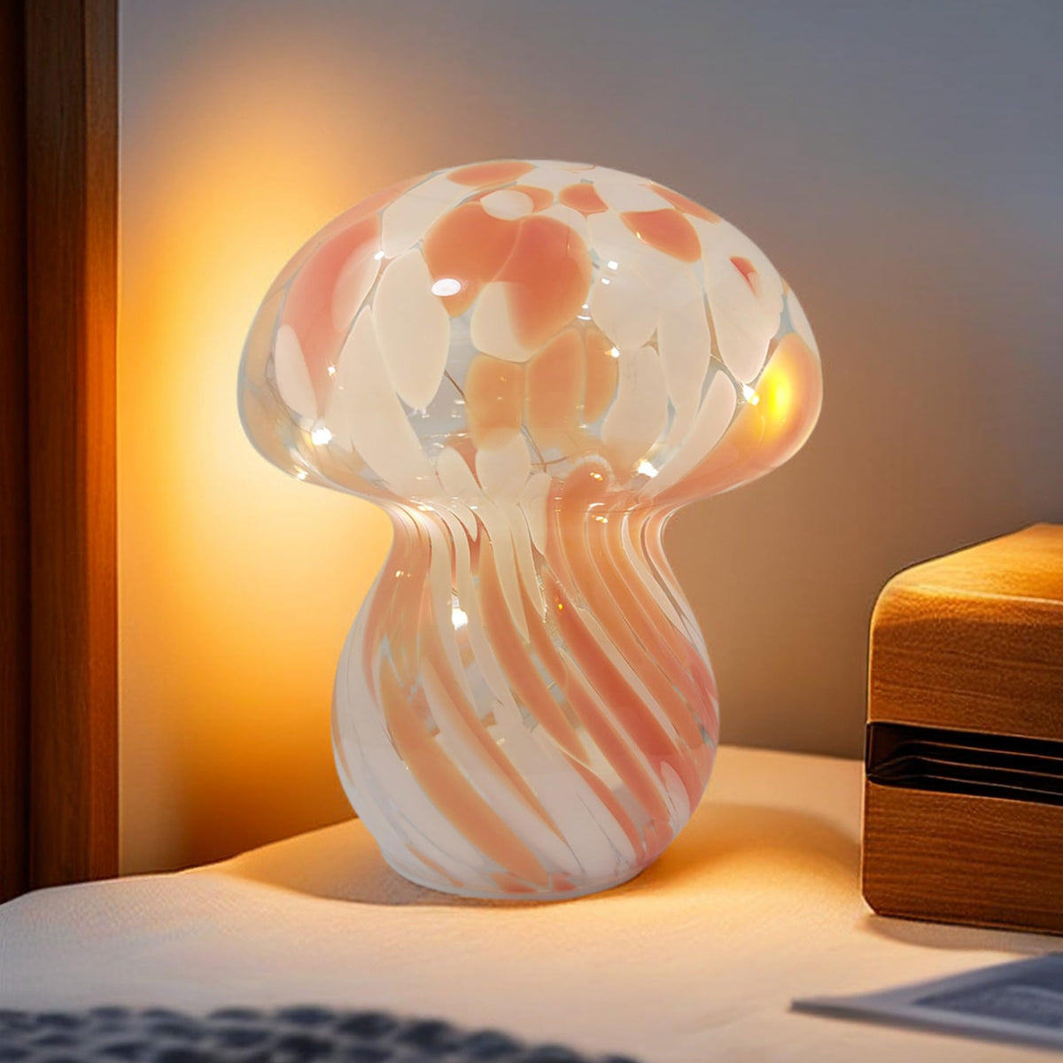 Jbgiyosg Mushroom Table Lamps Night Lights Cute Glass Nightstand Bedside Desk Lamps For Bedroom Living Study(Bulb Included) - Re