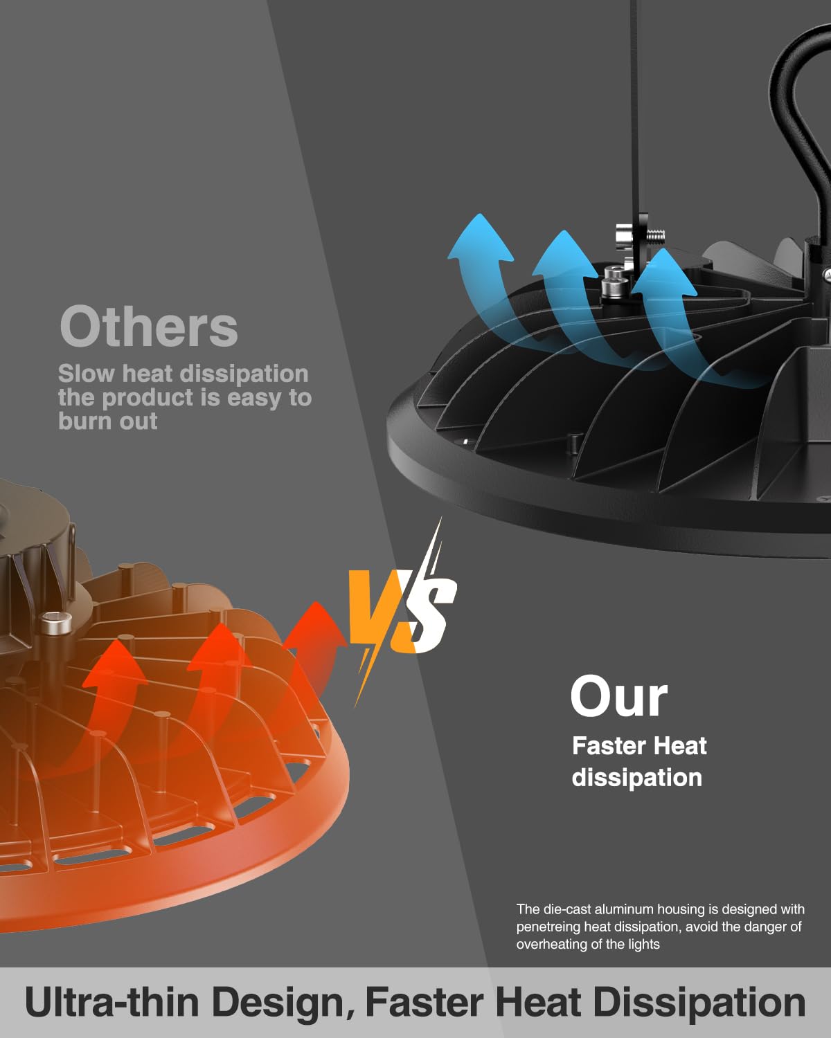 2 Easy Installaton, 1 Light, High Bay Lighting, With Us Plug, Us Hook, Safety Rope, U-Bracket, Plug In And Play, No Flicker, Ip65 Waterproof Led High Bay Lighting, Led High Bay Light With Solid Pure Aluminum, 5 Years Coverage High Bay Led Lights