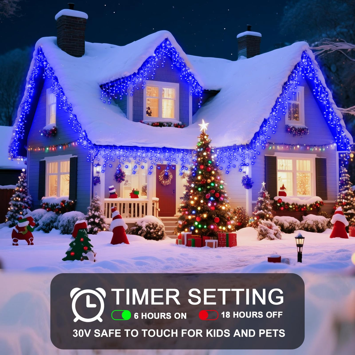 8 Modes & Timer Smart Lighting Control: Our Outdoor Christmas String Lights Offer 8 Dynamic Effects: Combination, Waves, Sequential, Slo-Glo, Chasing/Flash, Slow Fade, Twinkle, And Steady On. Each Mode Sets A Unique Mood. The Auto Timer Switches Lights On/Off For 6H/18H Daily. The Led Outdoor Lights With Freely Changeable Blinking Modes Make Maneuvering Outdoor Christmas Lights Easier.