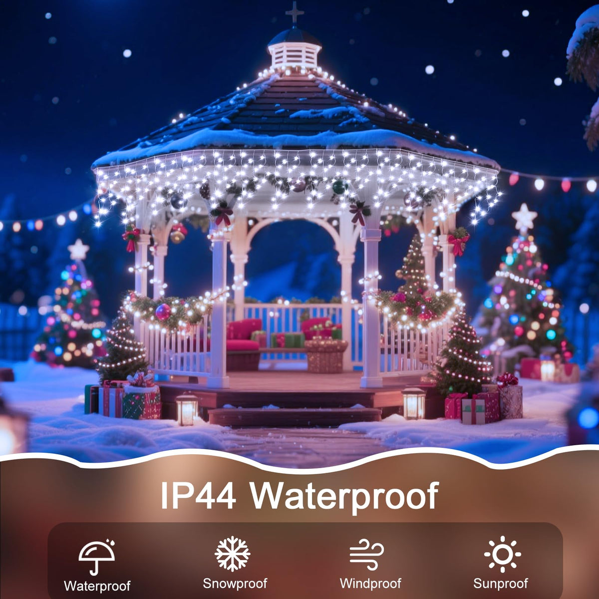 8 Modes & Timer Smart Lighting Control: Our Outdoor Christmas String Lights Offer 8 Dynamic Effects: Combination, Waves, Sequential, Slo-Glo, Chasing/Flash, Slow Fade, Twinkle, And Steady On. Each Mode Sets A Unique Mood. The Auto Timer Switches Lights On/Off For 6H/18H Daily. The Led Outdoor Lights With Freely Changeable Blinking Modes Make Maneuvering Outdoor Christmas Lights Easier.