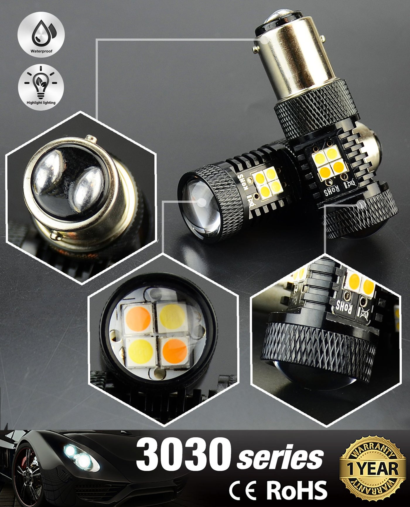 JDM ASTAR Extremely Bright 3030 Chipsets White/Yellow 1157 2057 2357 1157A 2057A 2357A Switchback LED Bulbs with Projector For T