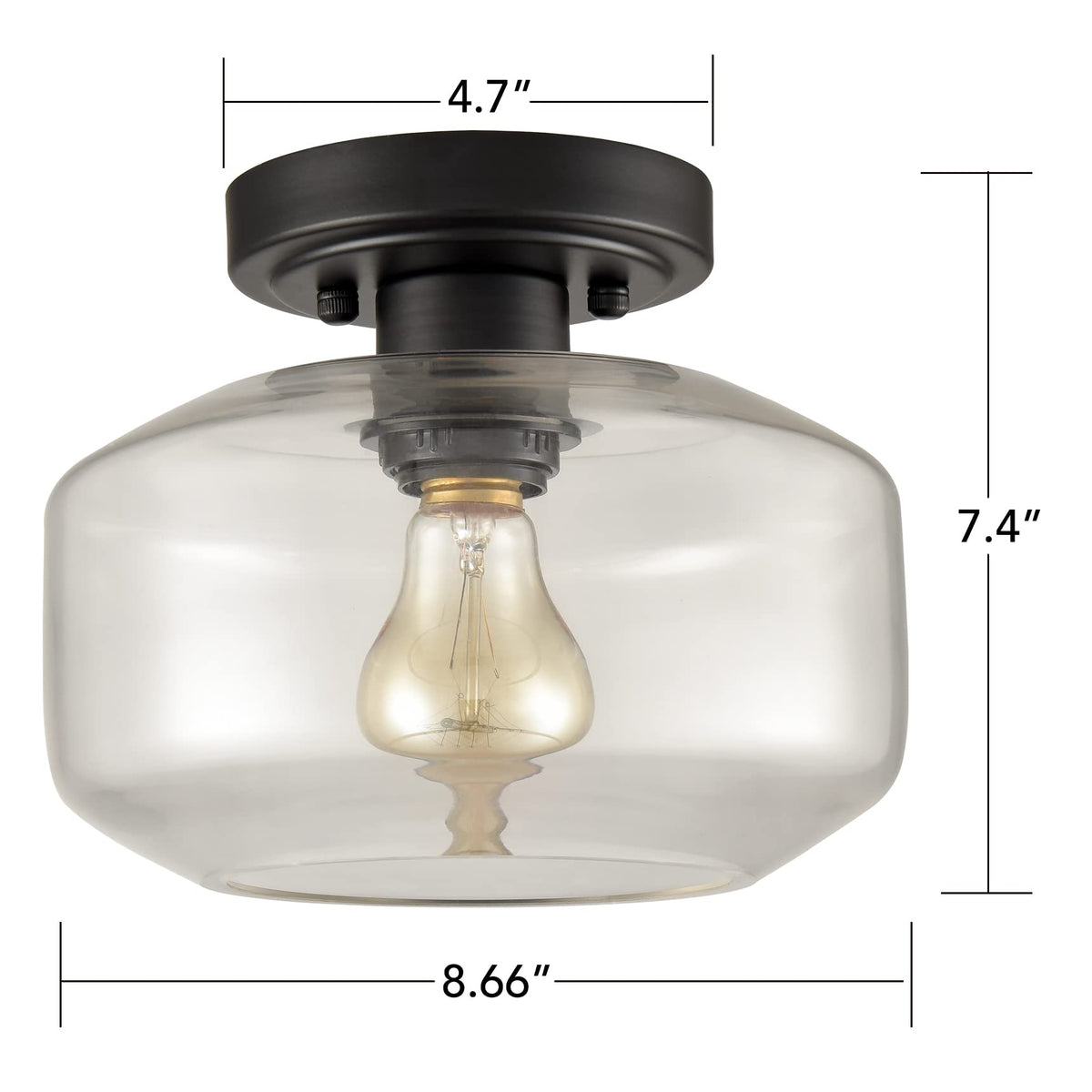 Q: What are the dimensions of the JEENKAE ceiling light?A: The overall height of the ceiling light is seven point four inches, with a width of eight point six six inches and a canopy diameter of four point seven inches.