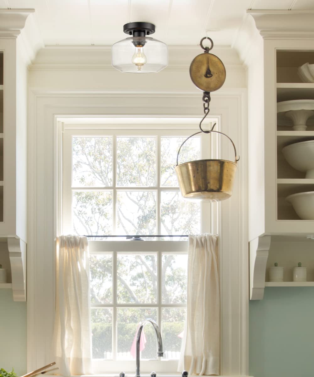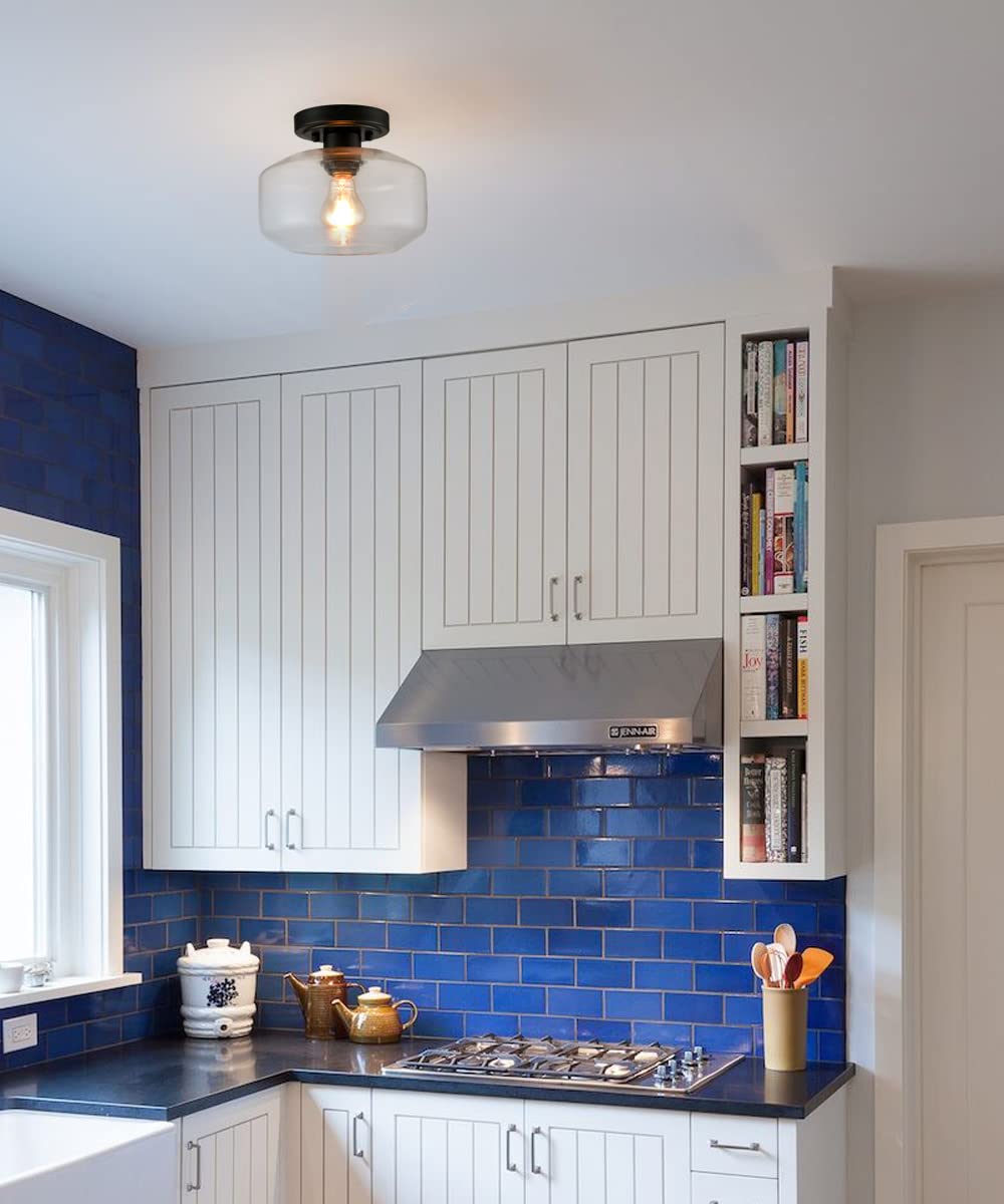 JEENKAE Modern Farmhouse Flush Mount Ceiling Light, Black, Glass, Small Size for Hallway, Laundry Room, Entryway