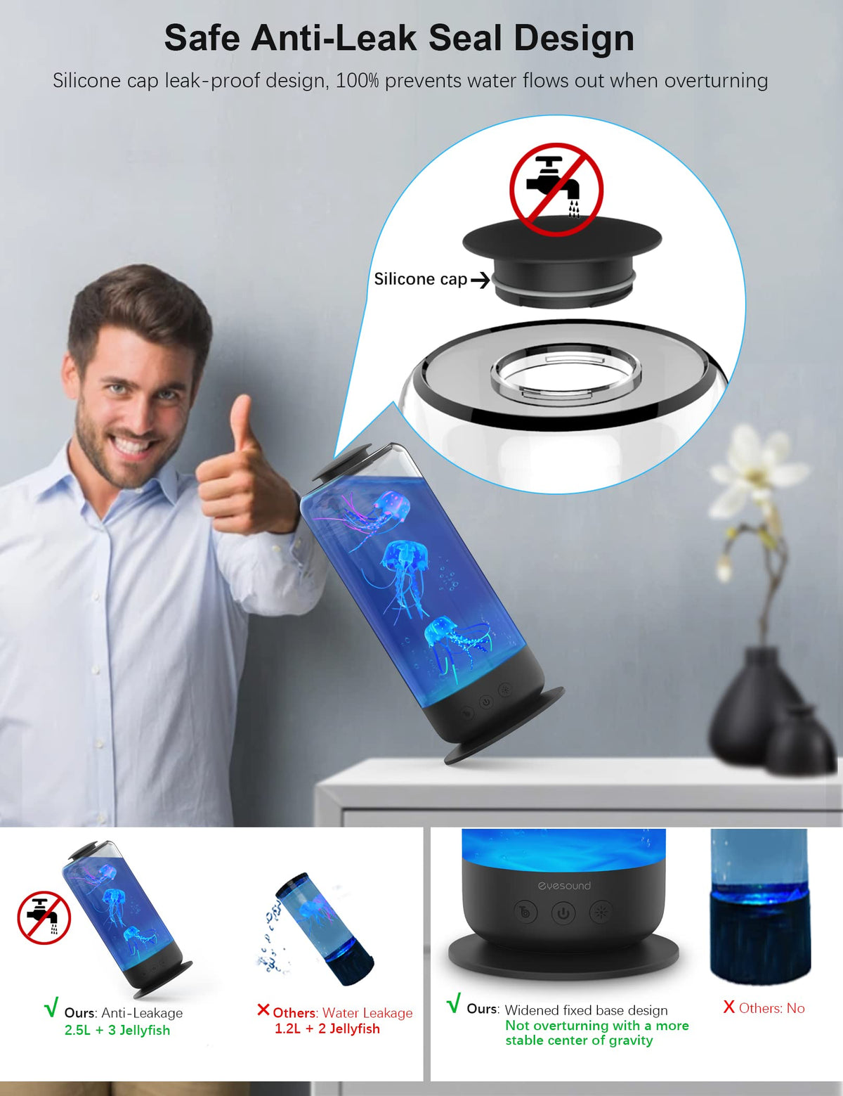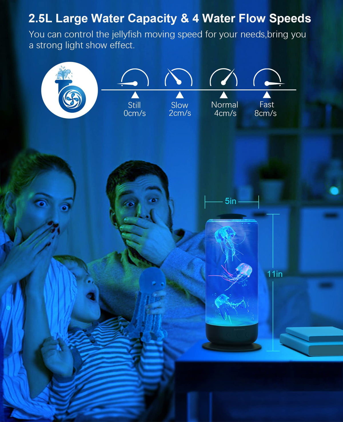 Jellyfish Lamp 2.5L USB Plug-in Jellyfish Lamp, LED Color Changing Jellyfish Aquarium with Speed Control & 2 Light Modes, Mood Lamp for Home Office Room, Gifts for Kids Teens Girls Boys Adults