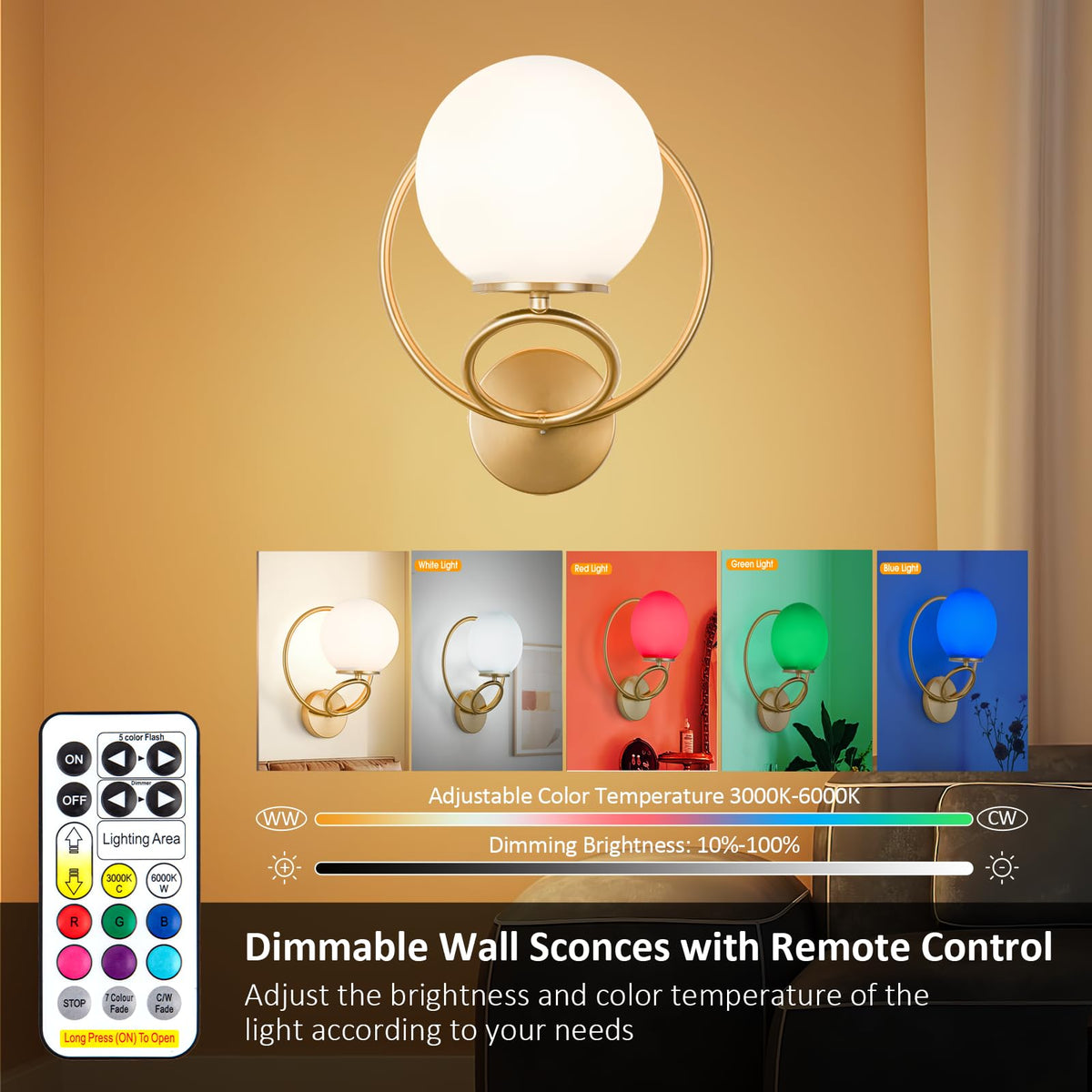 Jengush Battery Operated Wall Sconce Set Of 2, Wireless Wall Lights With Remote Control Dimmable,Rechargeable Wall Light Indoor
