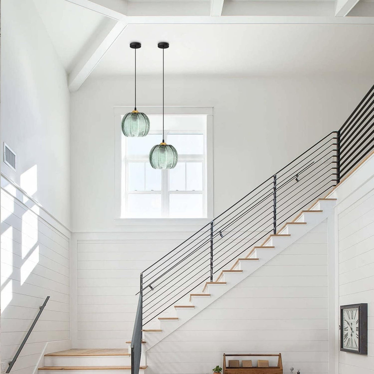 Q: What materials are used in the pendant light?A: The pendant light is made of glass and features a steel cable. This combination provides both elegance and durability for everyday use.