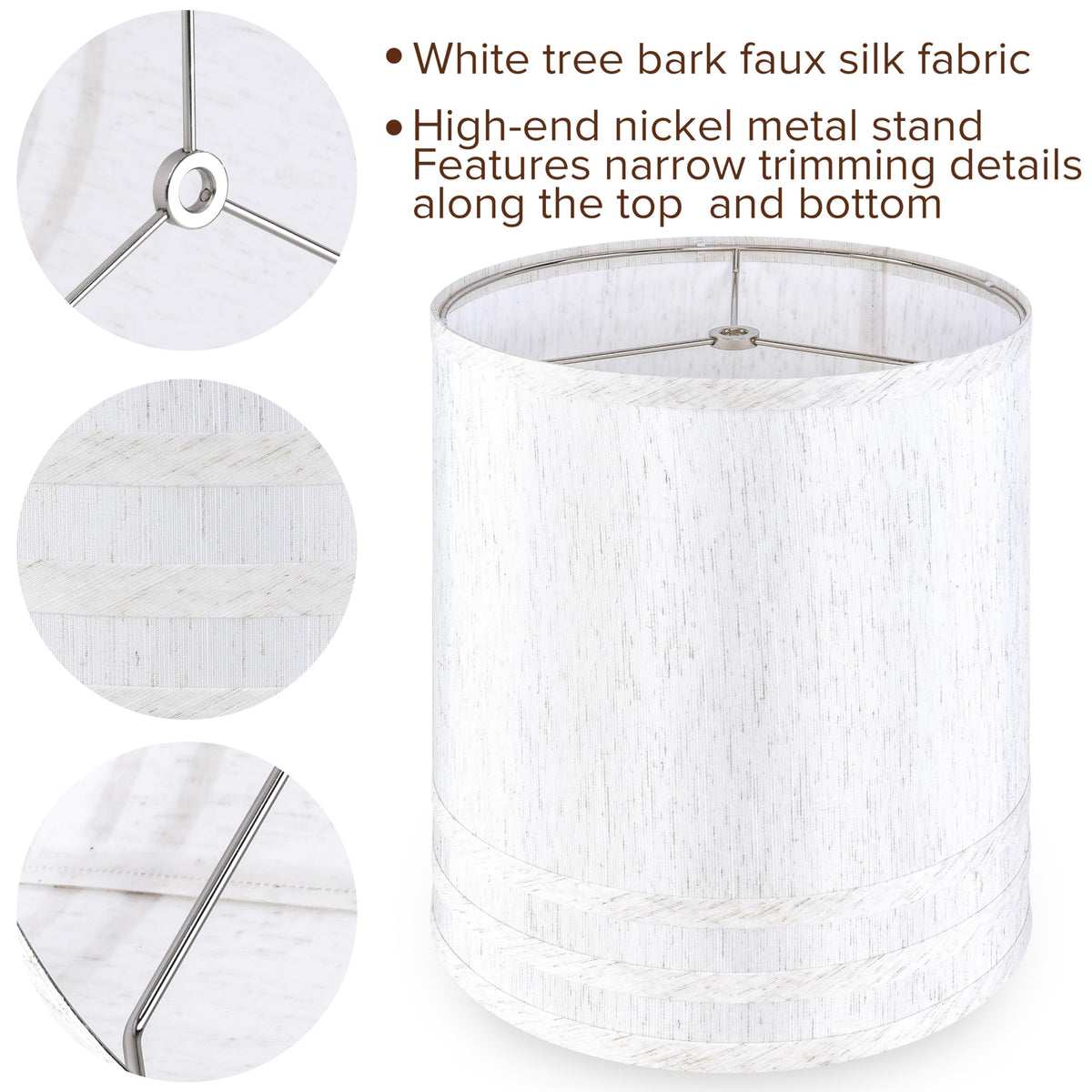 JERHOUS Tall Drum Lamp Shades Set of 2 Medium Light White Textured linen Lampshade